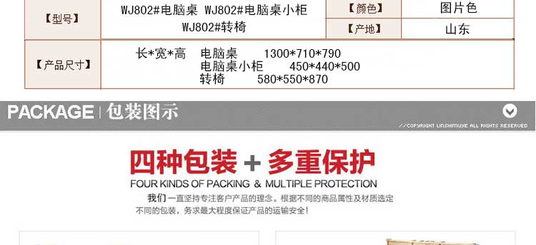 外围尺寸:WJ802#电脑桌 1300*710*790 WJ802#电脑桌小柜 450*440*500 WJ802#转椅 580*550*870