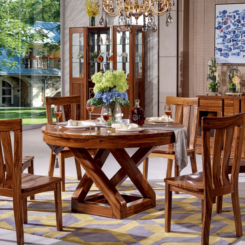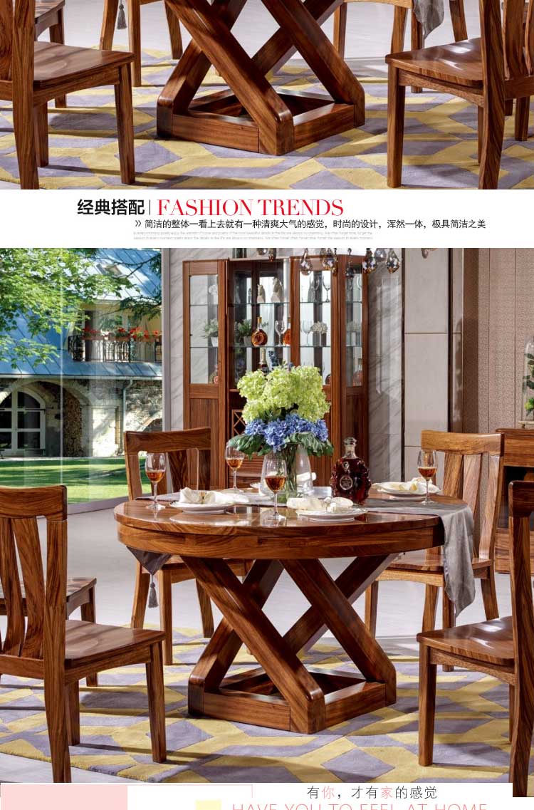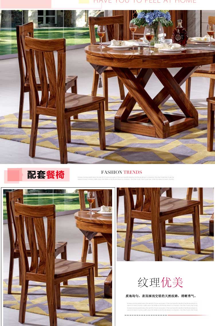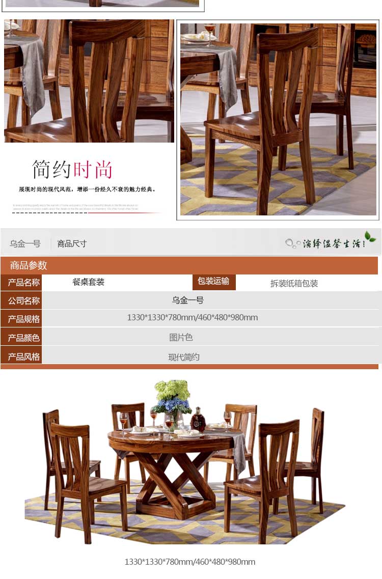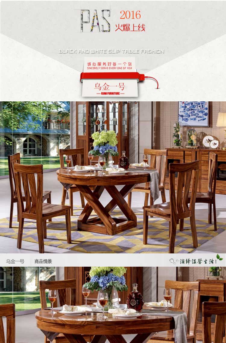 乌金一号 现代风格实木木餐桌实乌金木圆餐桌餐椅 特价 WJ806#圆桌 WJ809#餐椅