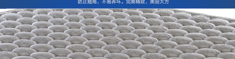 外围尺寸:120*190*29cm; 150*200*29cm; 180*200*29cm; 200*220*29cm。 (上层:6cm裥棉外套(含2cm负离子记忆棉)+ 5CM迷你簧+18CM无边框独立弹簧 +特硬白护边框+下层:2cm裥棉外套)