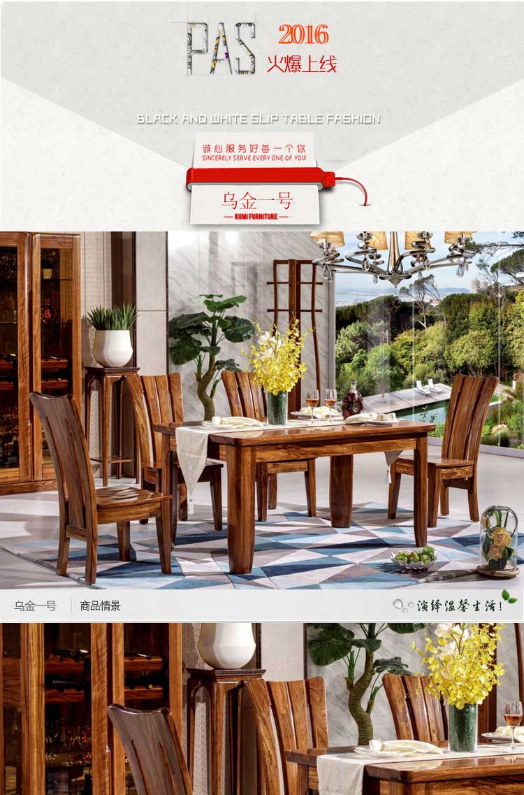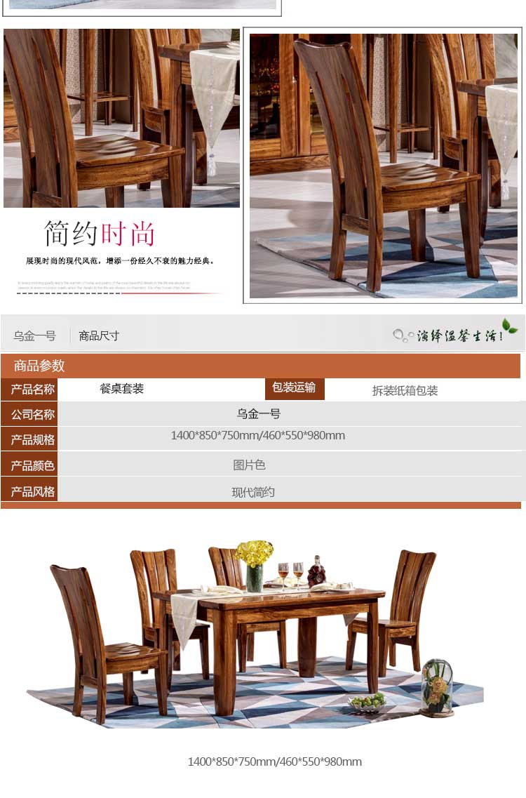 乌金一号实木餐桌实木长方形餐台 实木家具餐桌椅组合方桌 特价 WJ805#餐桌 WJ806#餐椅