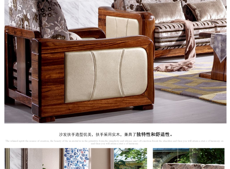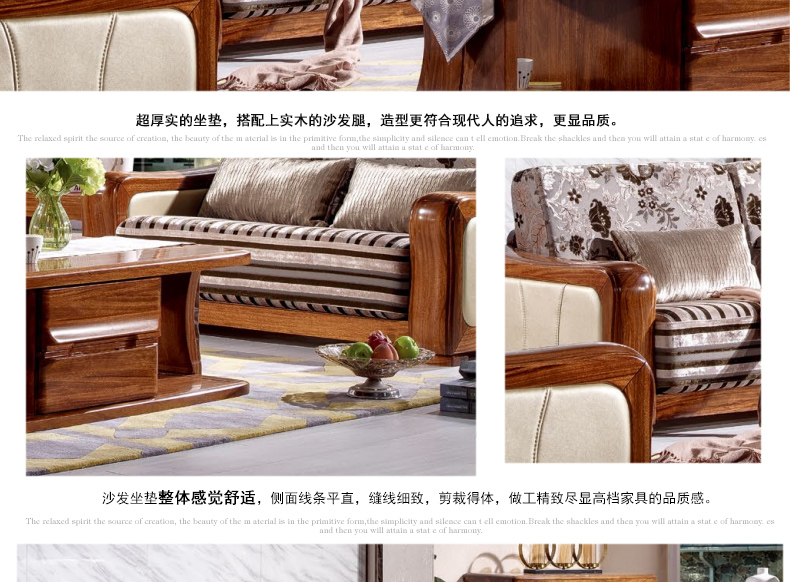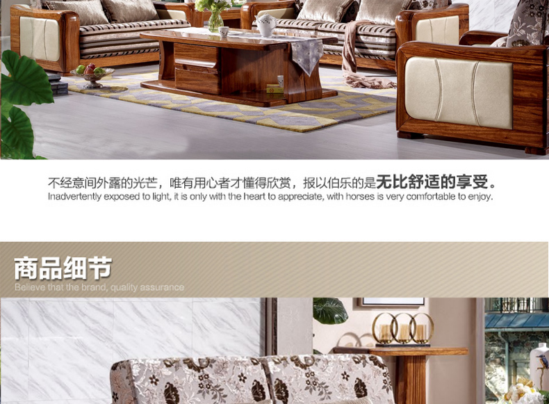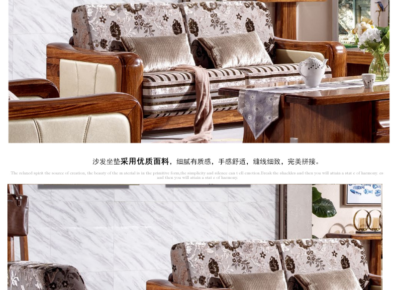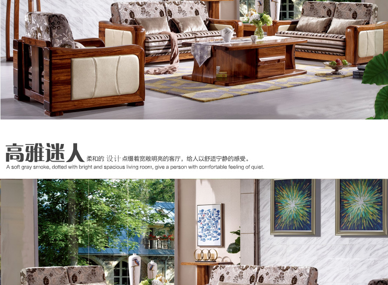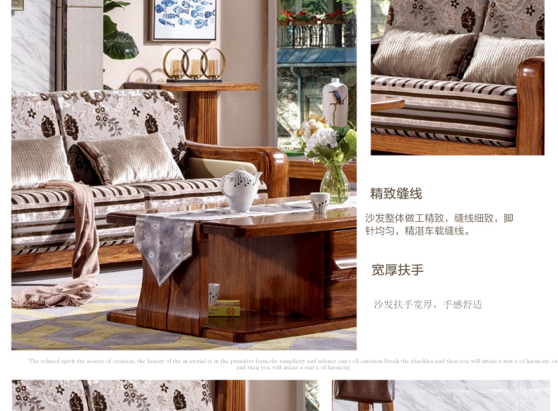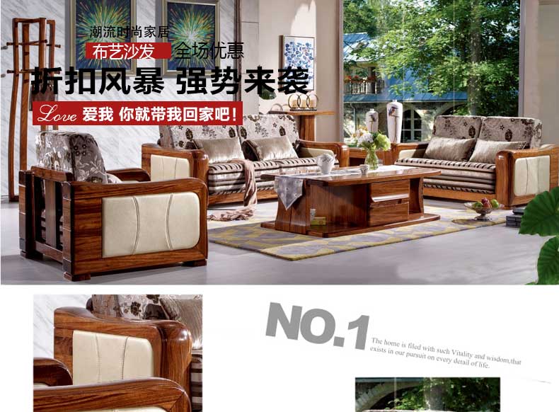乌金一号大小户型客厅实木布艺沙发组合单人位双人位三人位沙发组合WJ503#