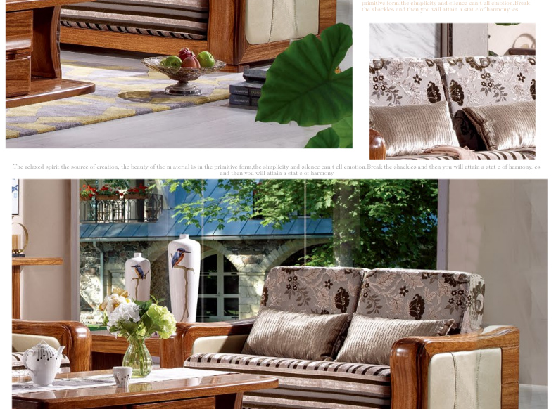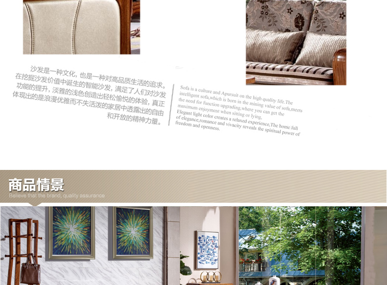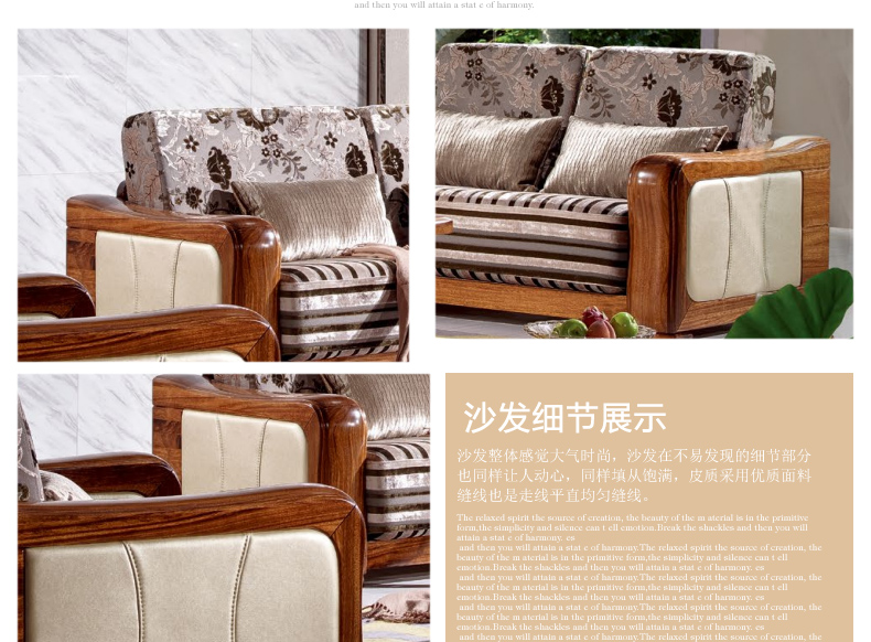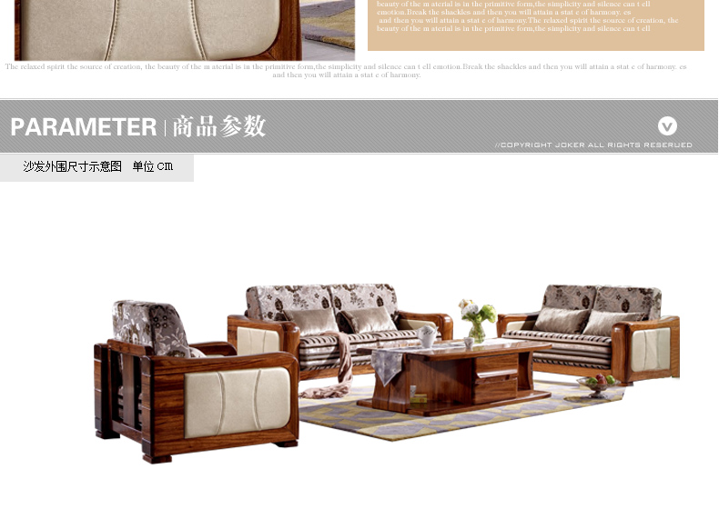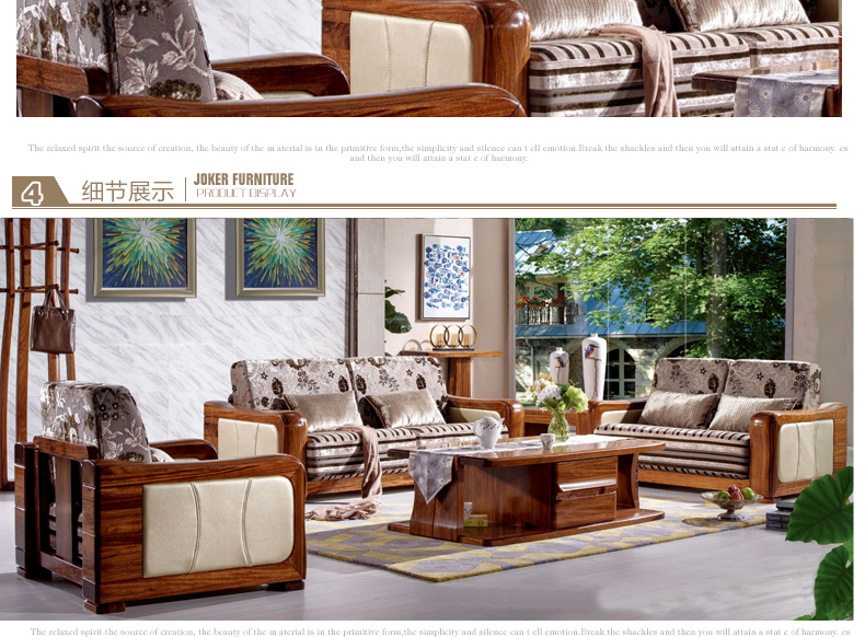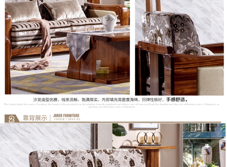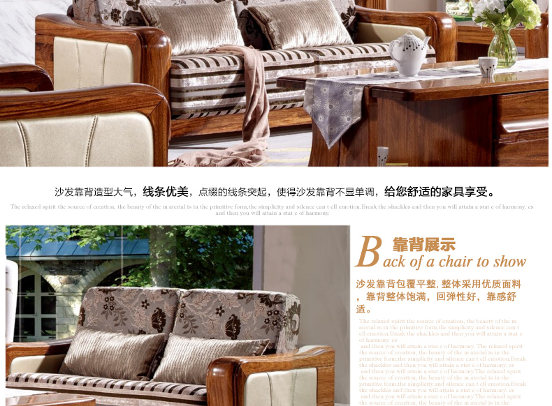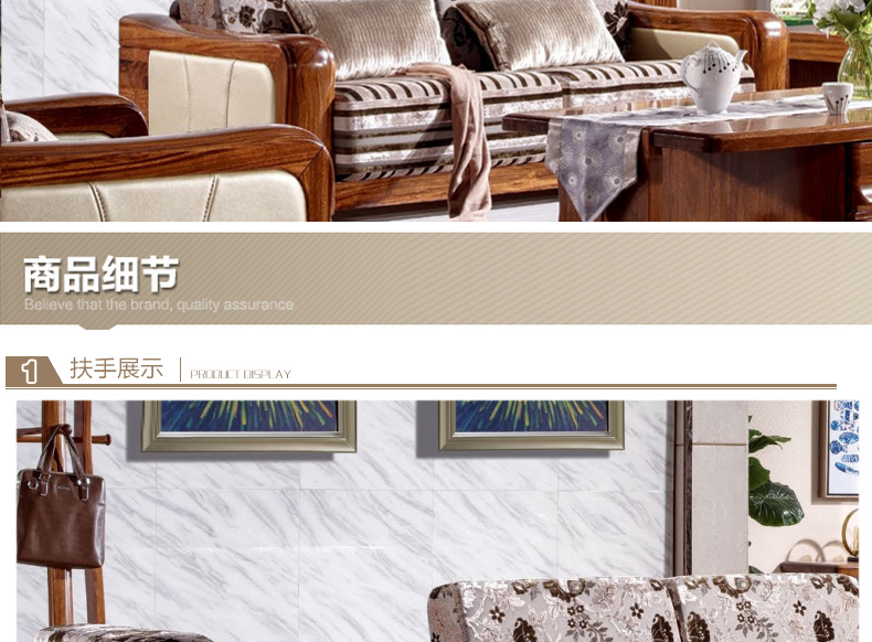 乌金一号大小户型客厅实木布艺沙发组合单人位双人位三人位沙发组合WJ503#