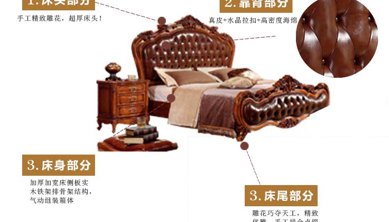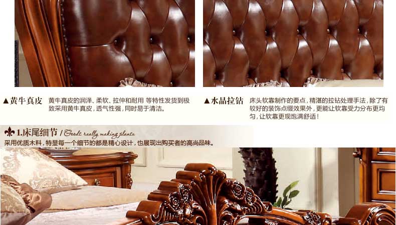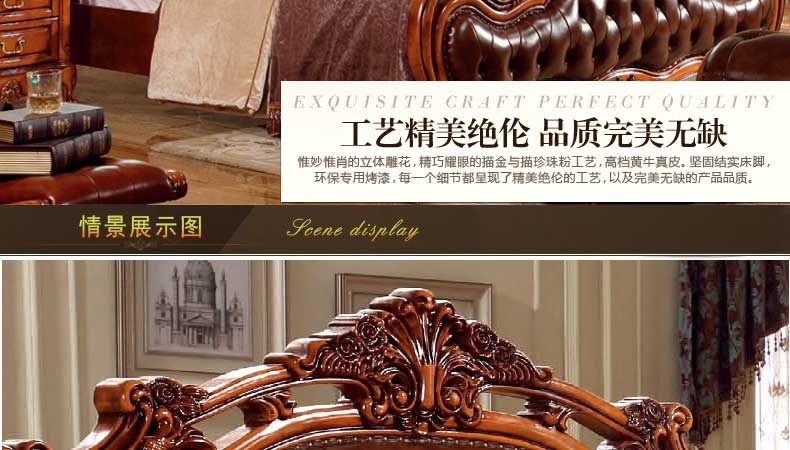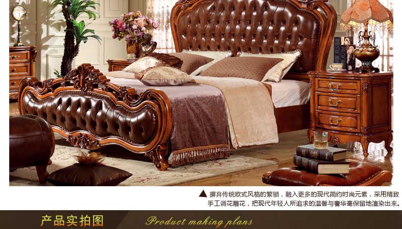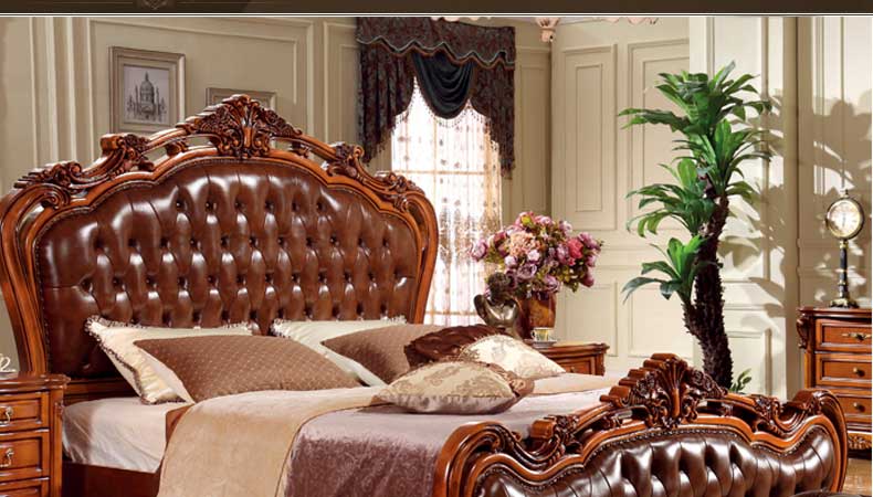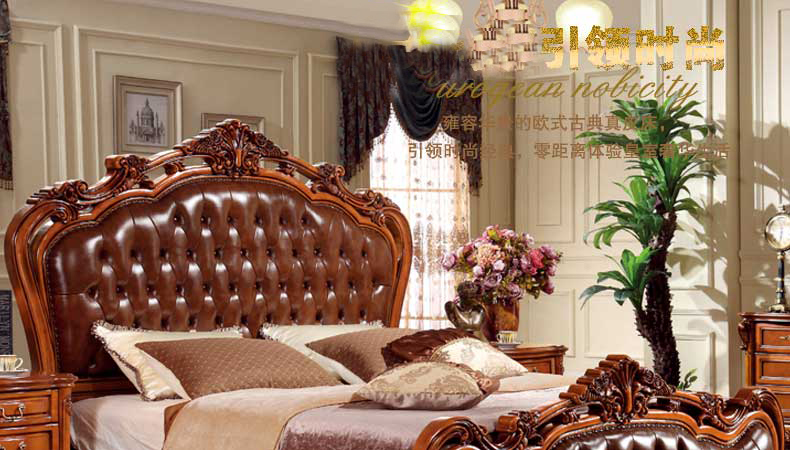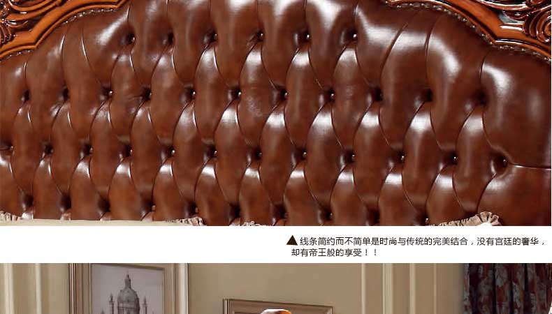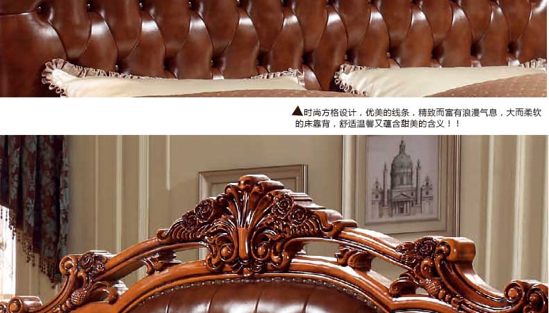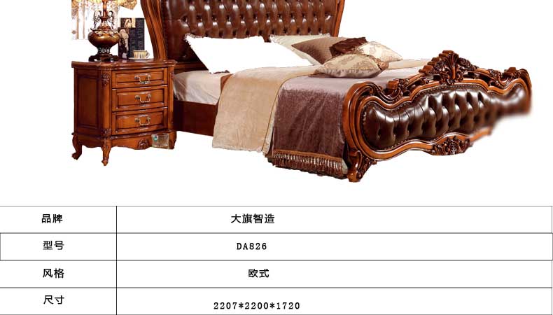 大旗 全实木床家具欧式床双人真皮特价床卧室实木床 高档卧室 DA826