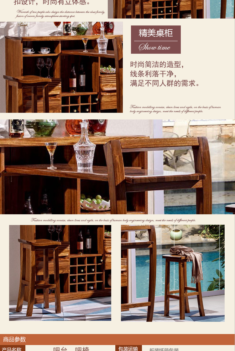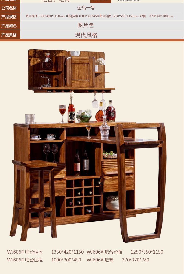WJ606#吧台柜体 1350*420*1150 WJ606#吧台挂柜 1000*300*450 WJ606#吧台台面 1250*550*1150 WJ606#吧凳 370*370*780