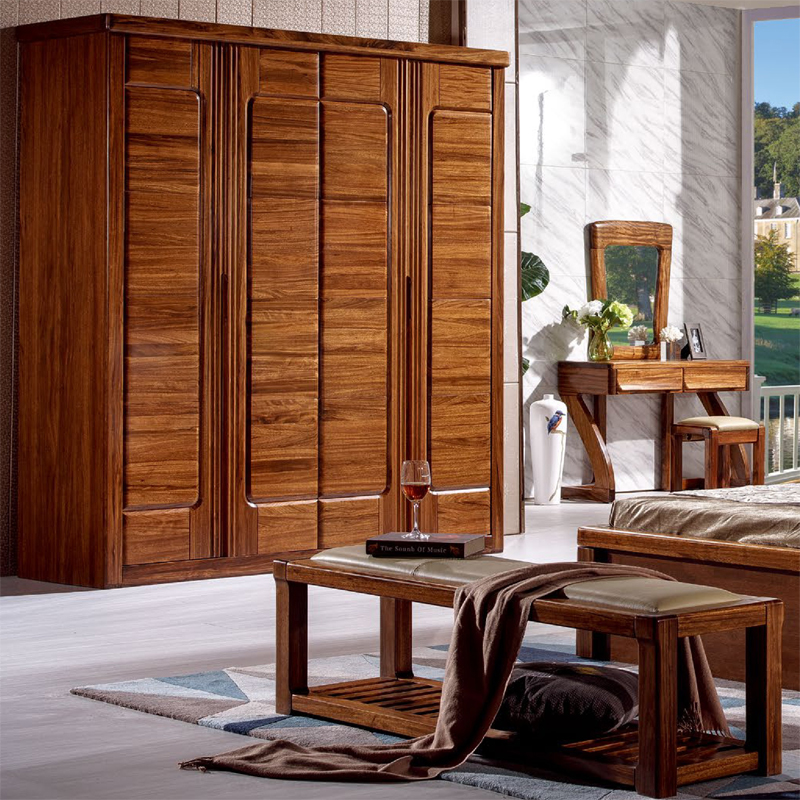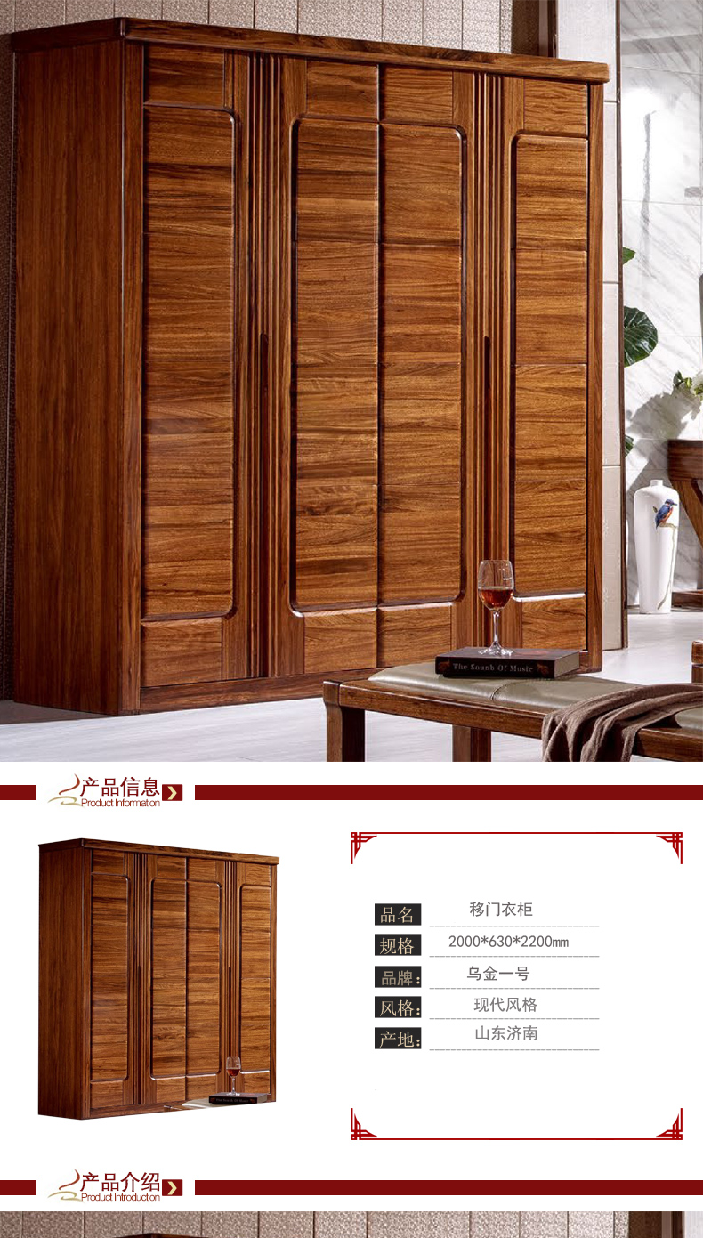 乌金一号现代乌金木衣柜实木四门大衣橱现代平开门卧室储物衣柜WJ105#
