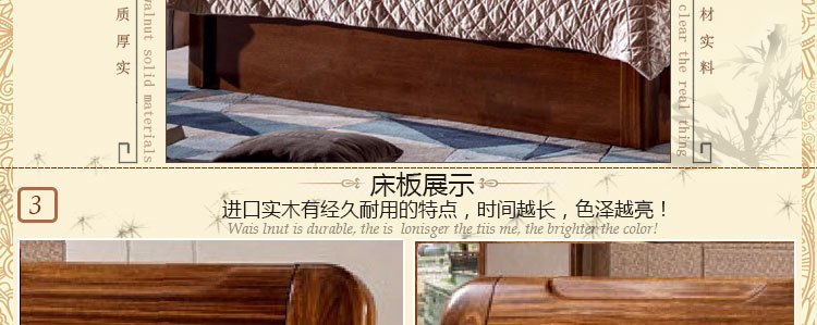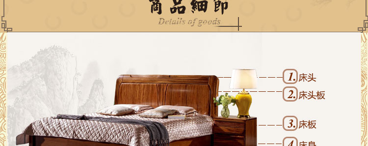 乌金一号高箱床储物床实木床双人床乌金木床现代中式简约1.8米床WJ207