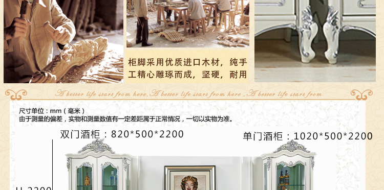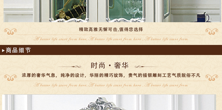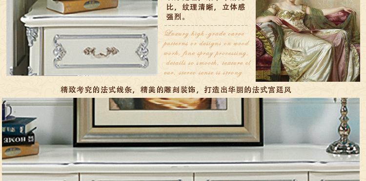 【贵族品质】进口实木纯手工雕花描金(银)!整体框架进口实木材质,进口实木抽屉、高档五金拉手,环保油漆无异味!