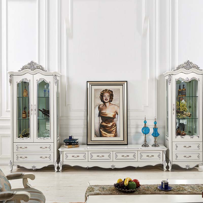 美林印象 欧式酒柜电视柜组合实木雕花欧式地柜欧式家具组合f501
