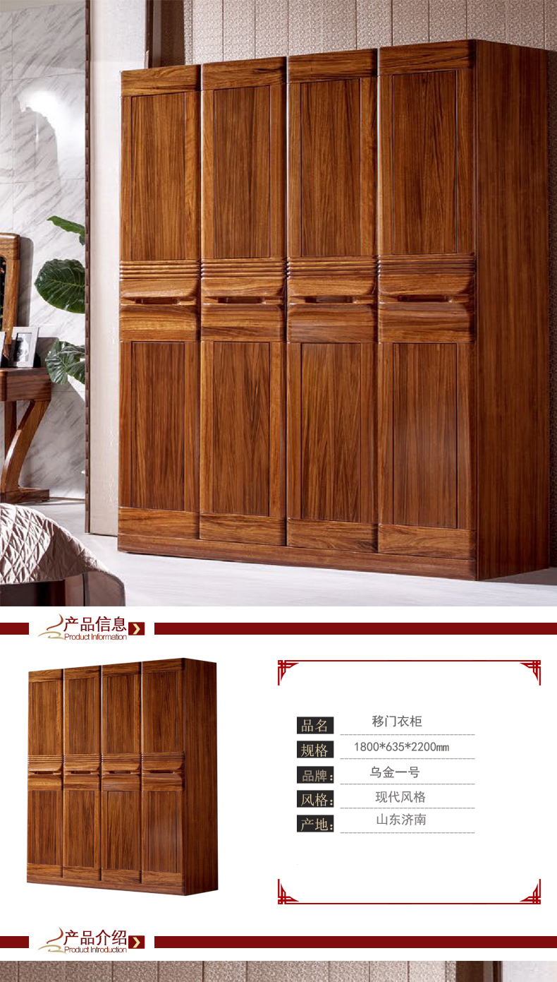 乌金一号现代 乌金木衣柜高端实木衣柜现代4门衣柜WJ101#