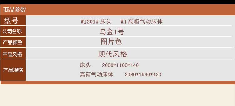 外围尺寸:WJ201#床头 2000*1100*140 WJ高箱气动床体 2080*1940*420