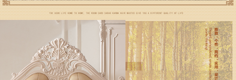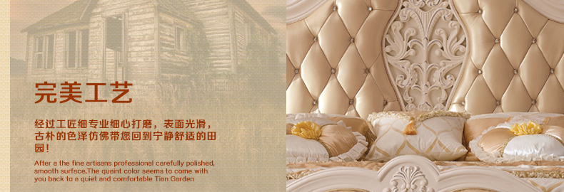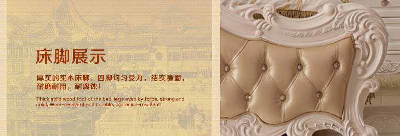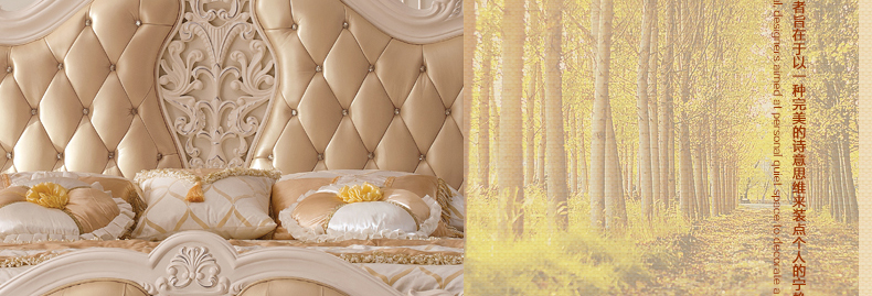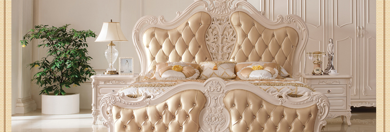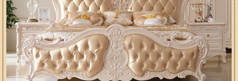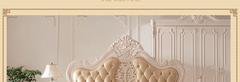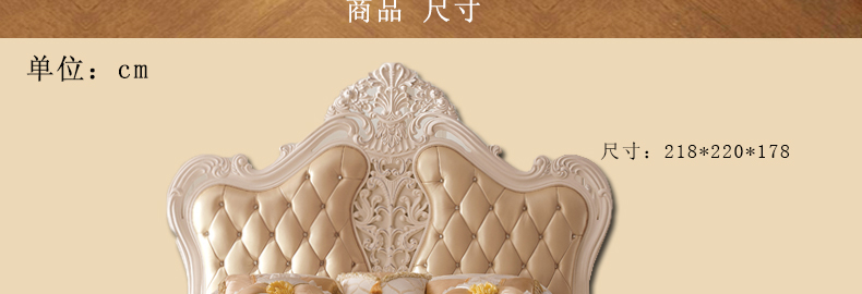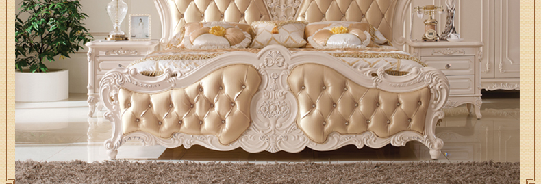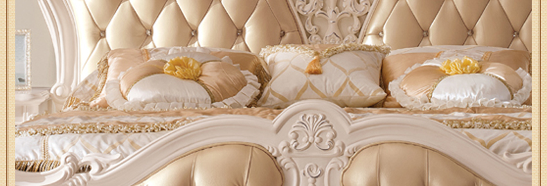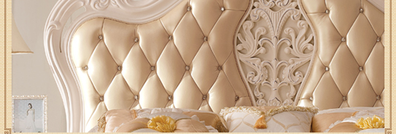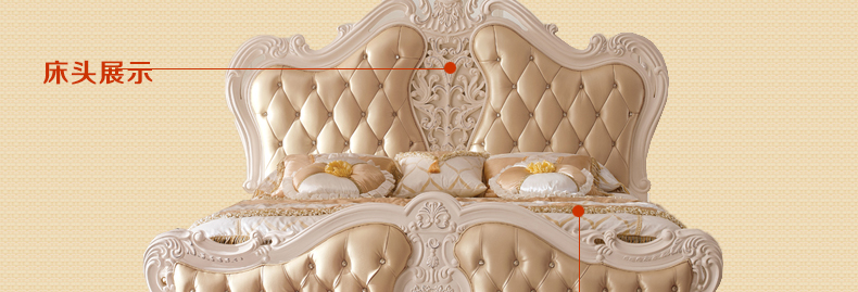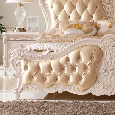 右岸嘉园欧式床实木床1.8米双人床 皮床雕花家具床田园公主床婚床806