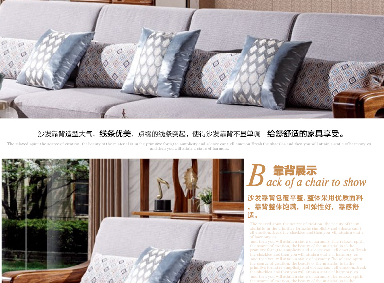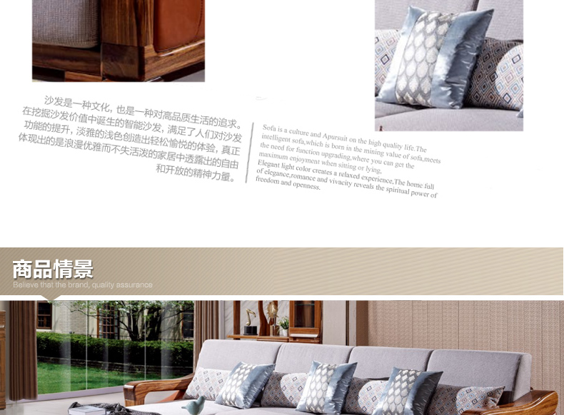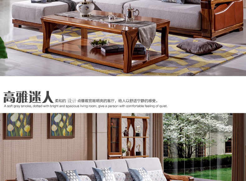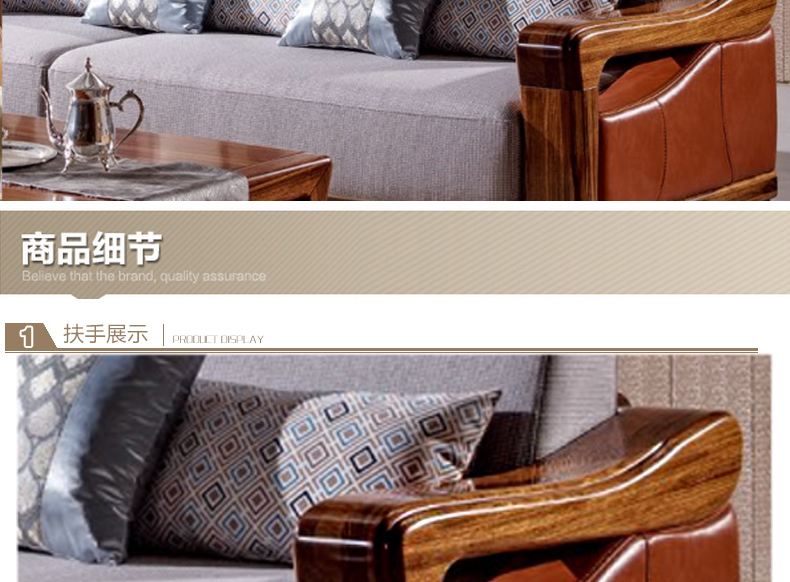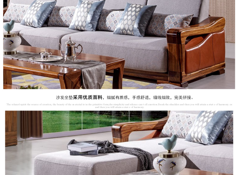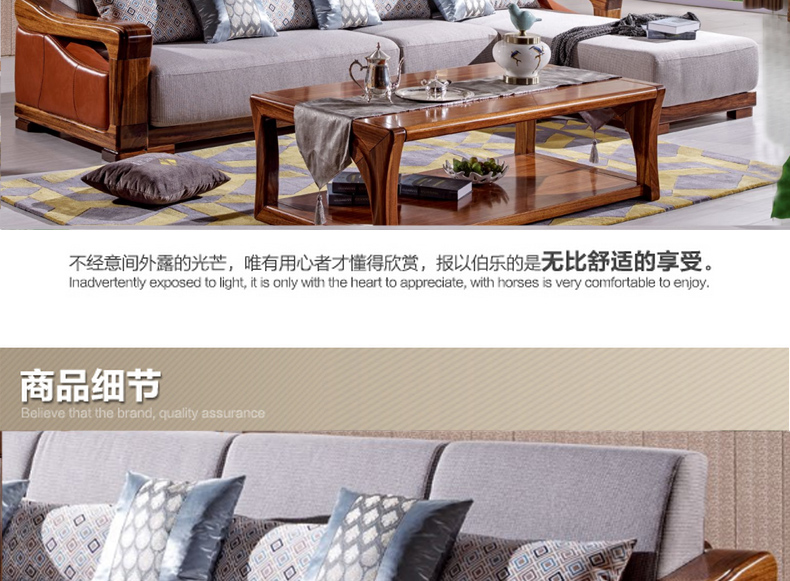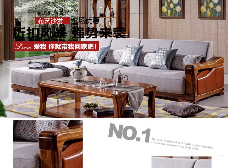 乌金一号现代新款贵妃位沙发组合转角沙发实木布艺沙发WJ505#