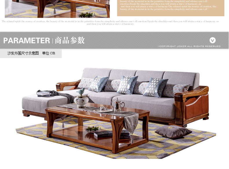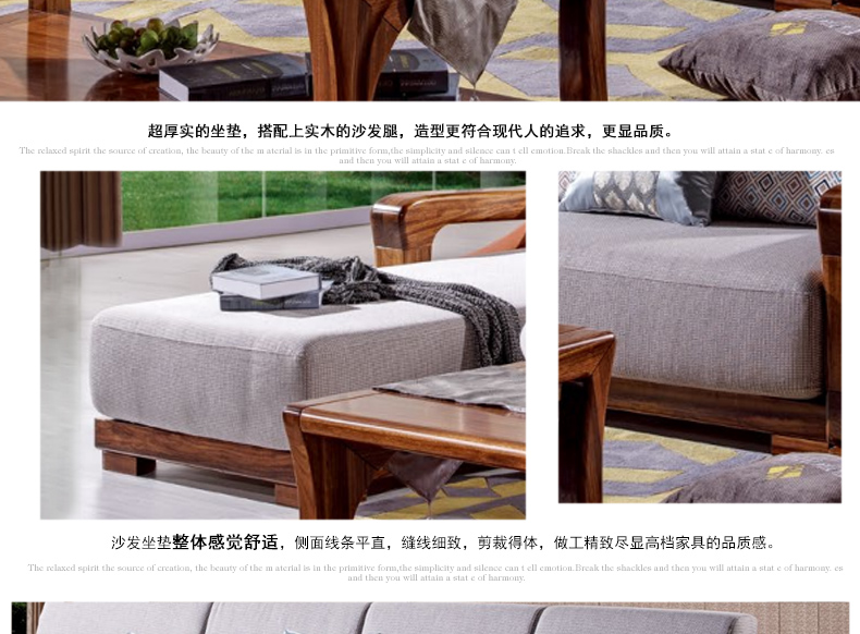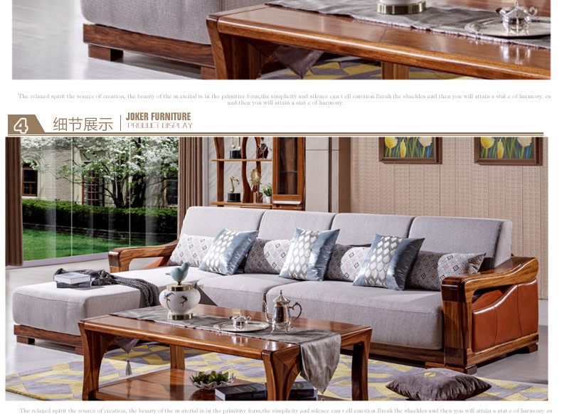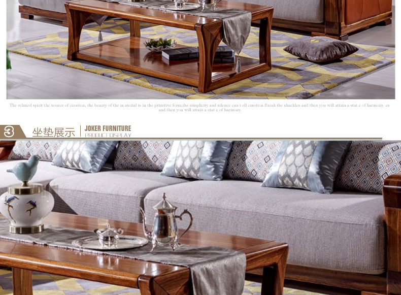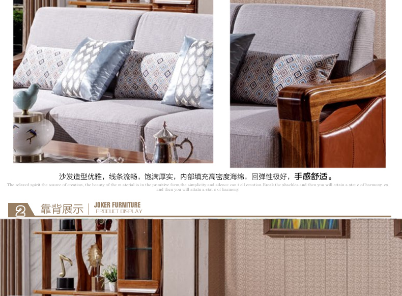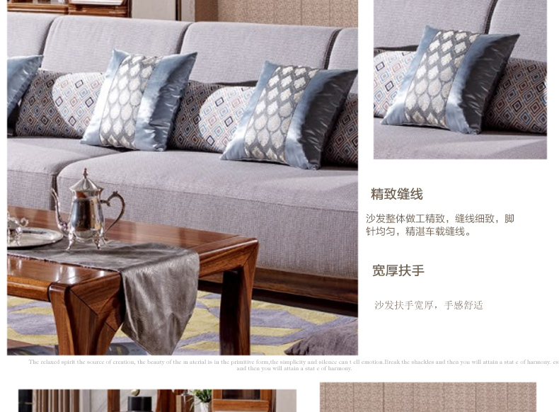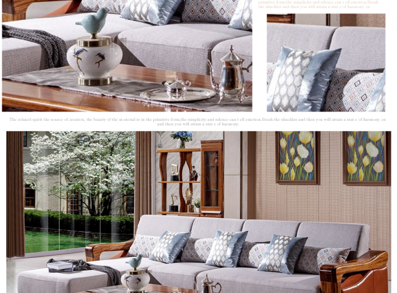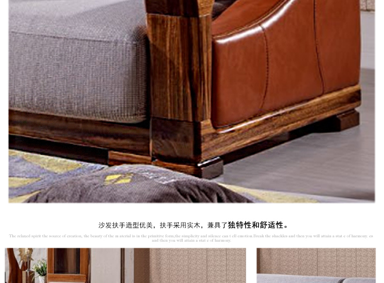 乌金一号现代新款贵妃位沙发组合转角沙发实木布艺沙发WJ505#