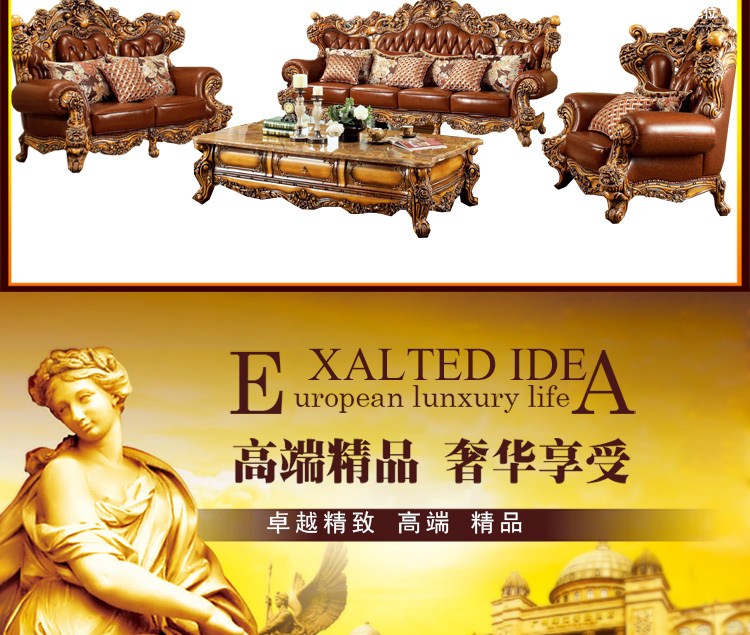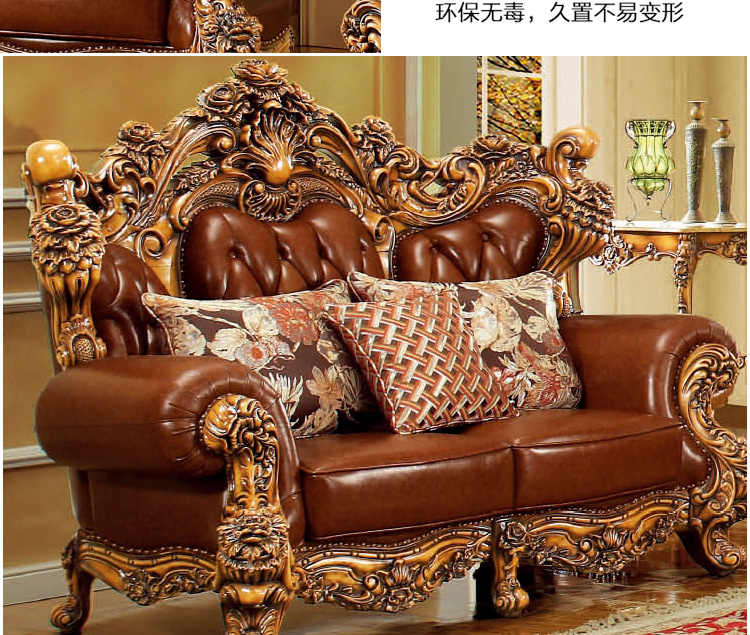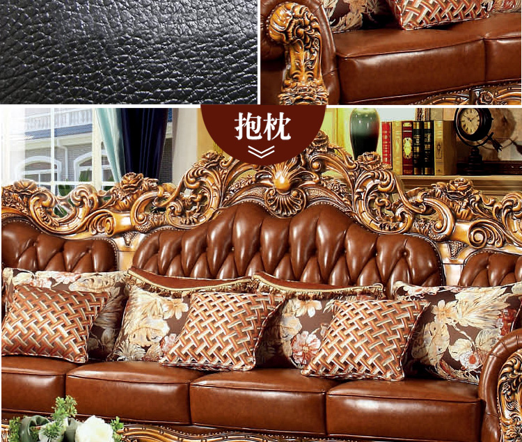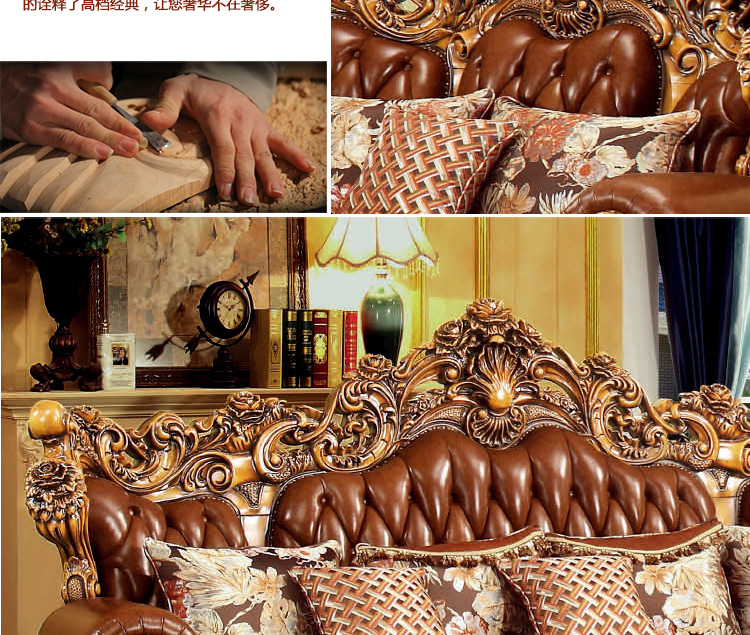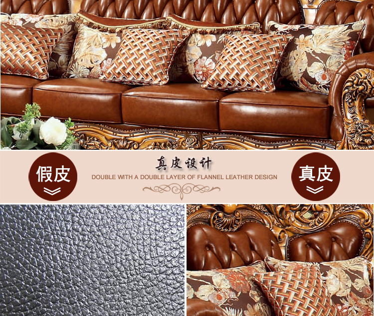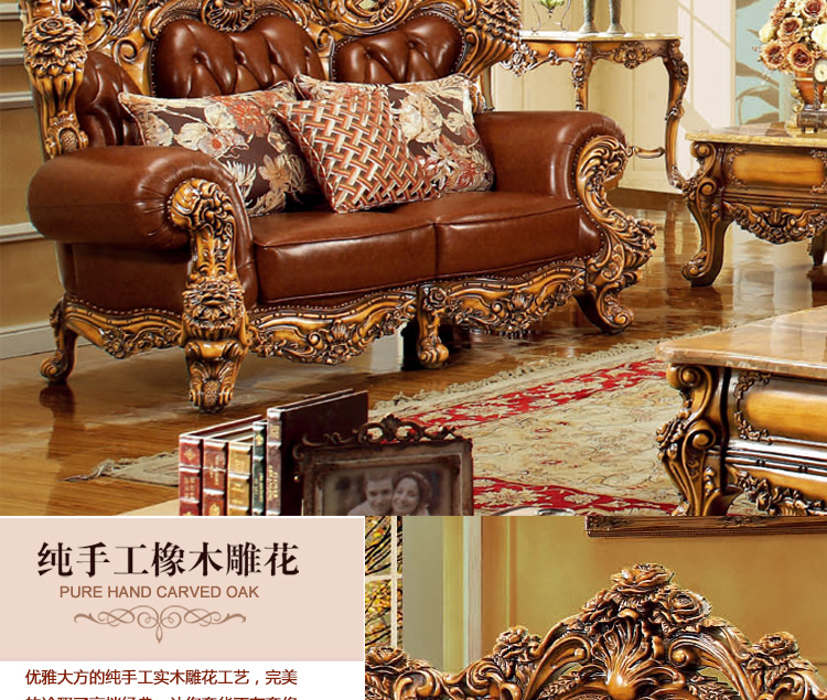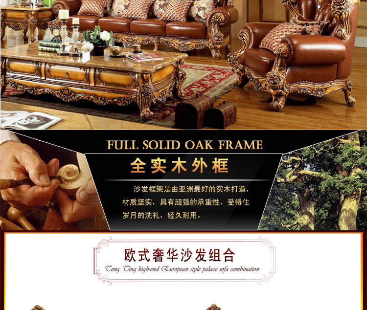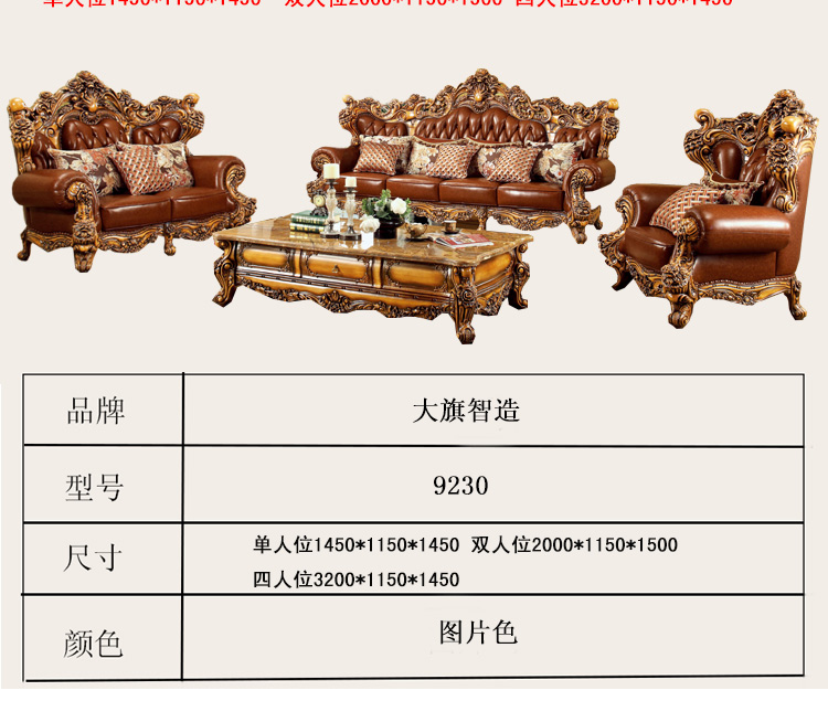 大旗 全实木沙发欧式沙发高档沙发组合真皮沙发 欧式实木家具 9230