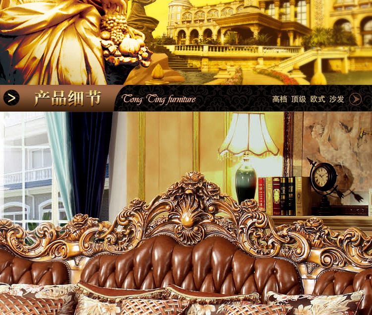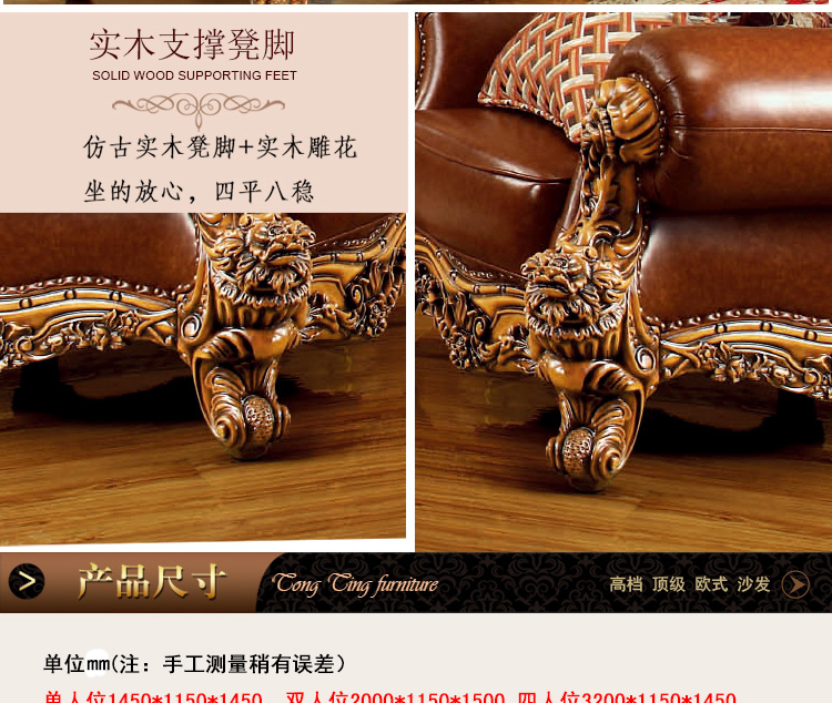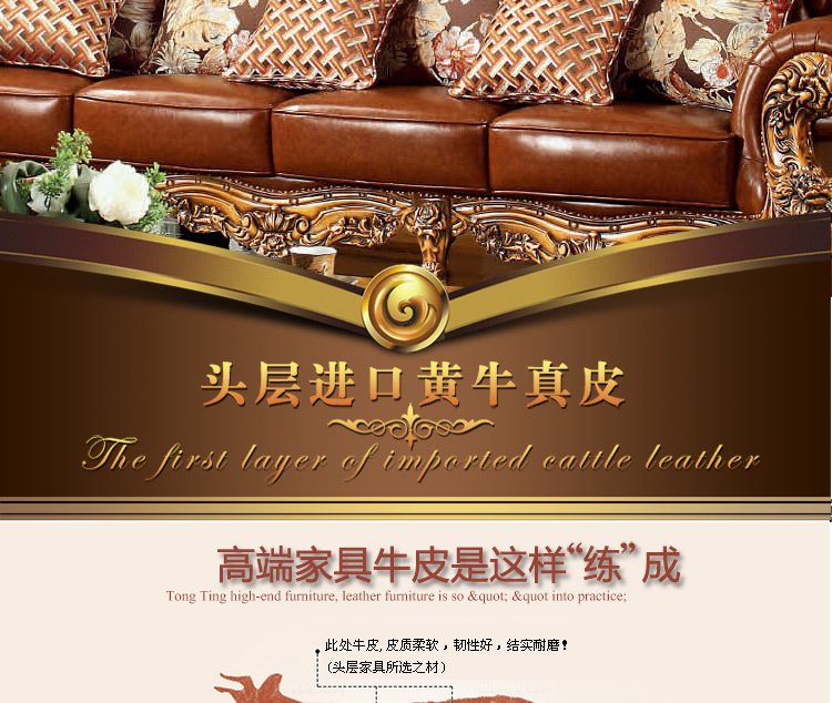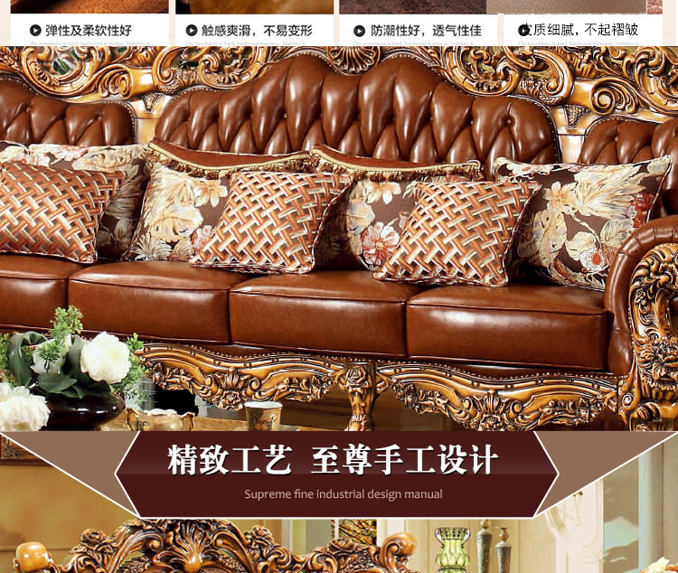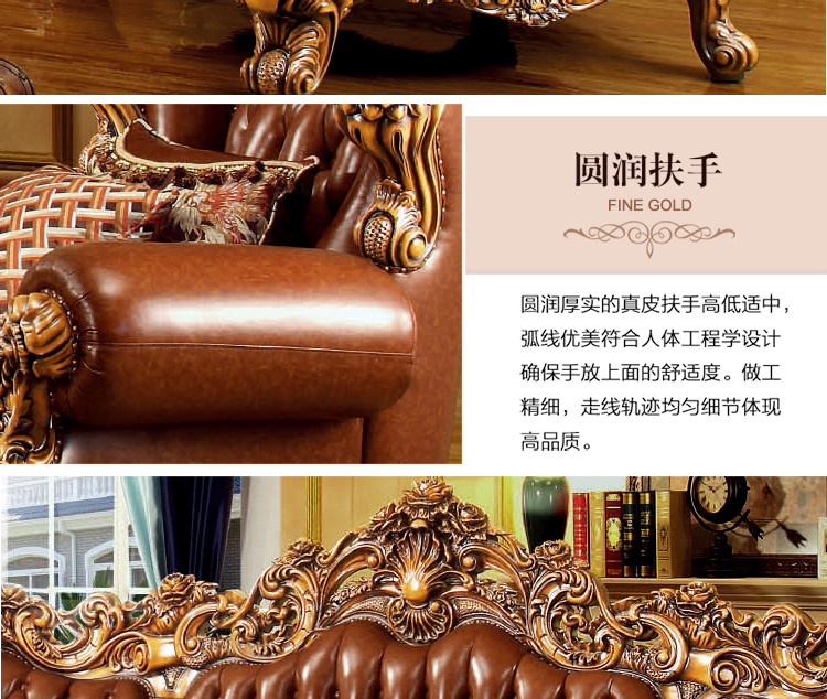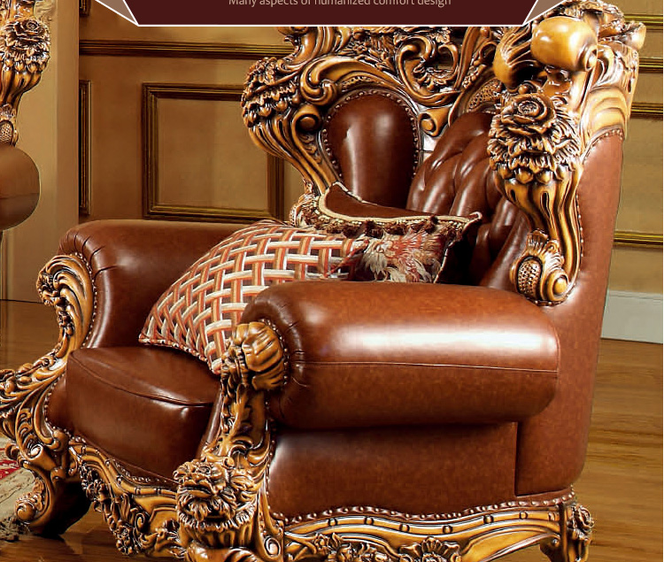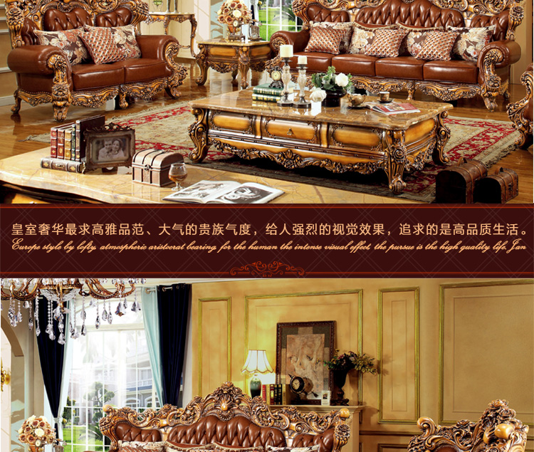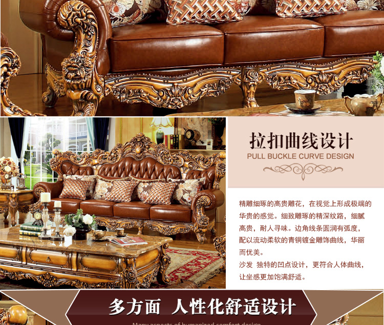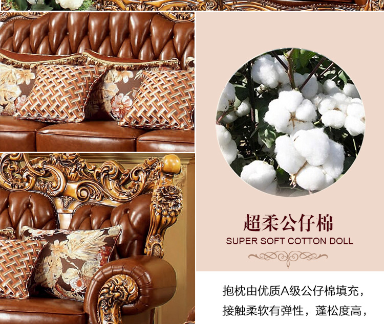大旗 全实木沙发欧式沙发高档沙发组合真皮沙发 欧式实木家具 9230