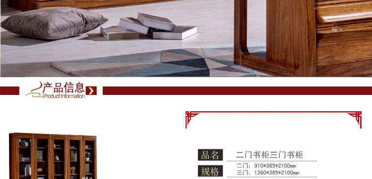 乌金一号现代中式简约 实木书柜 组合书柜 柜自由组合 书柜书架书橱WJ302二门书柜三门书柜