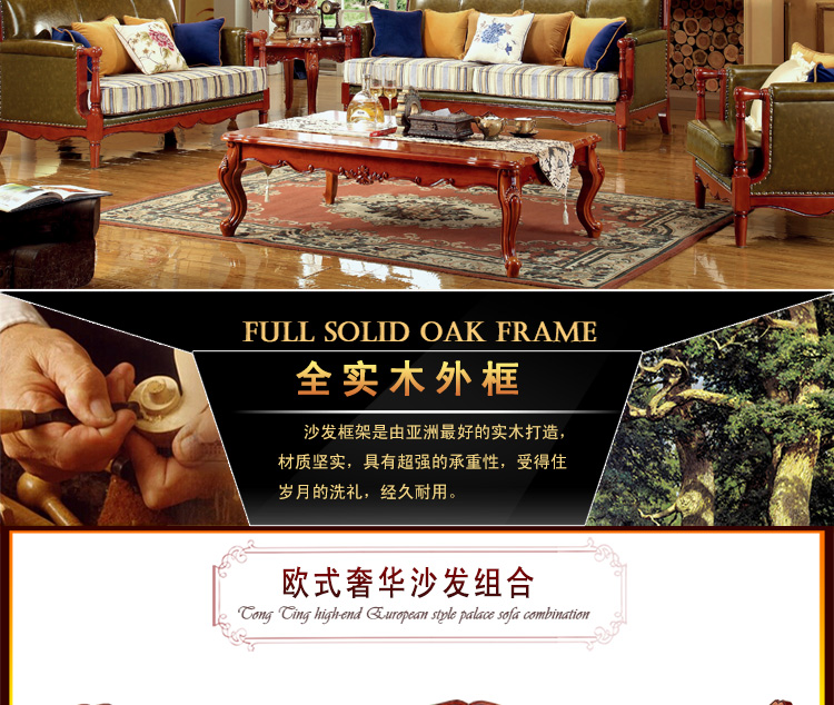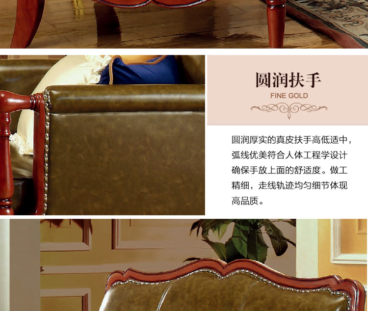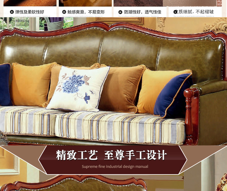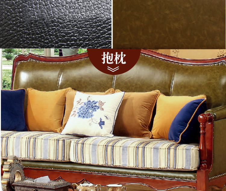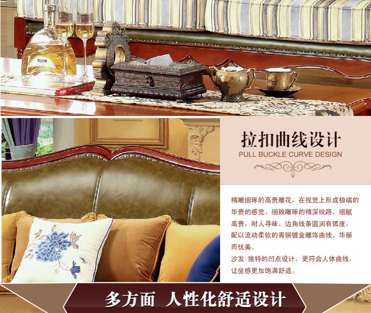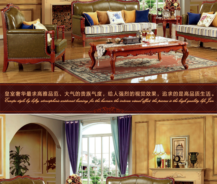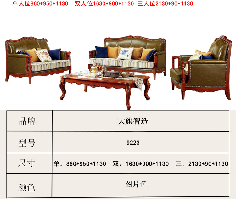 大旗 大小户型实木沙发组合欧式皮艺沙发家居欧式真皮沙发 9223