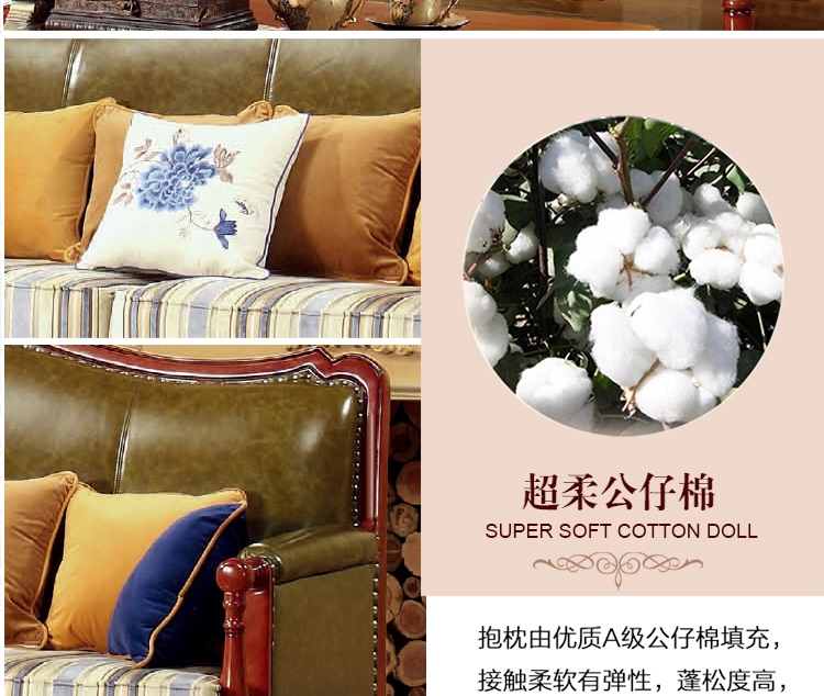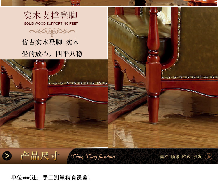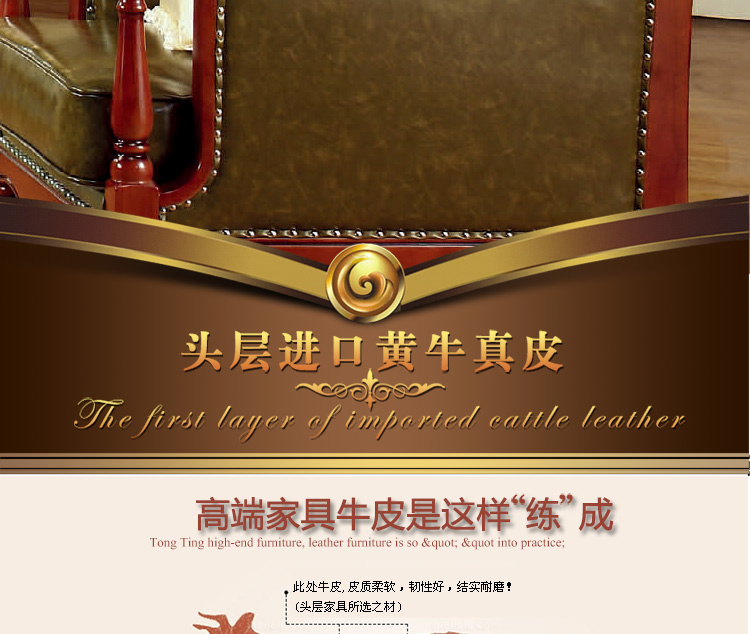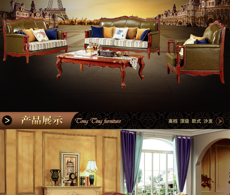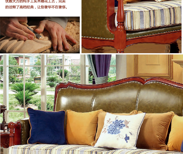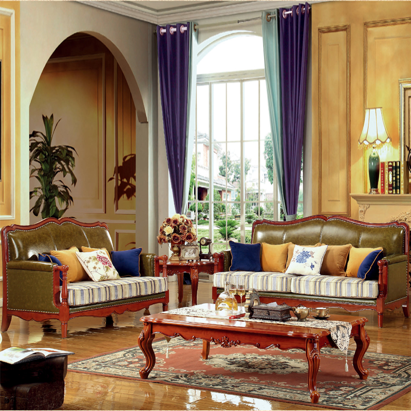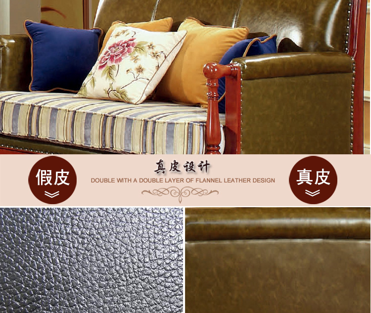 大旗 大小户型实木沙发组合欧式皮艺沙发家居欧式真皮沙发 9223