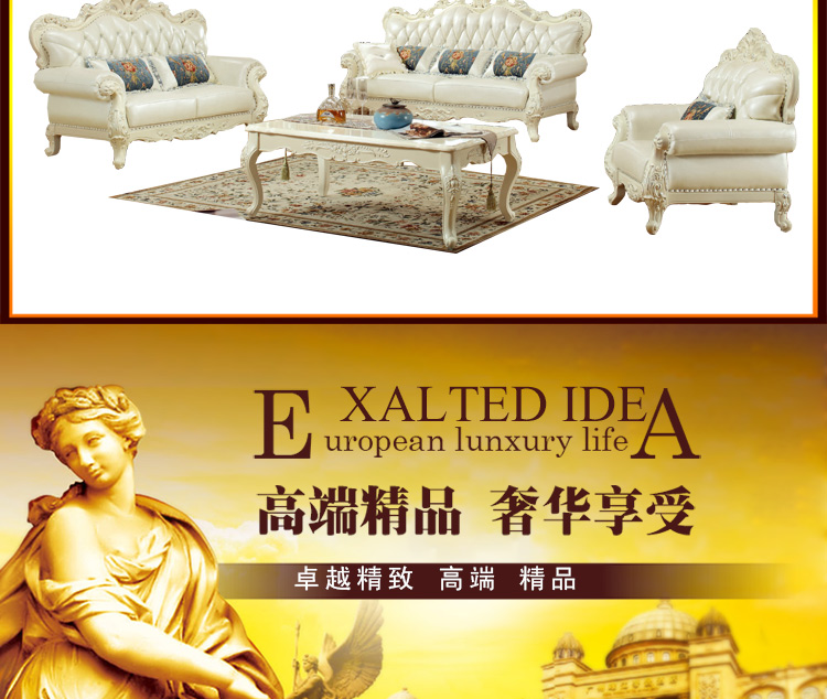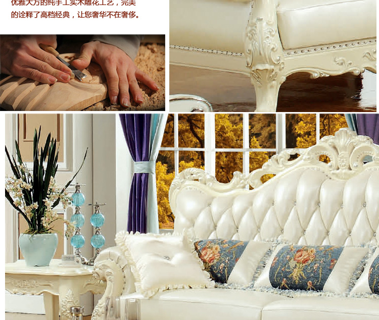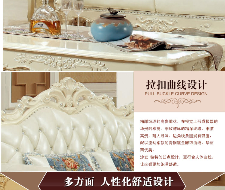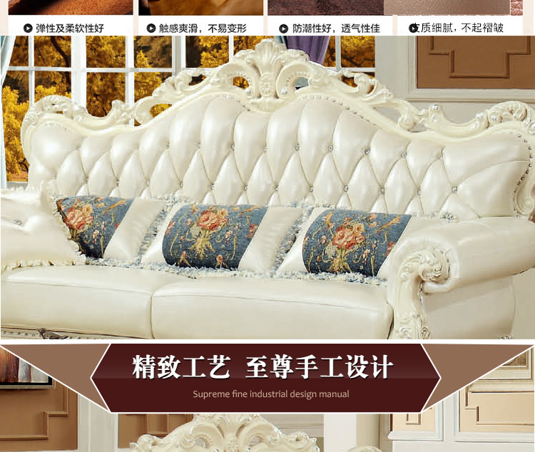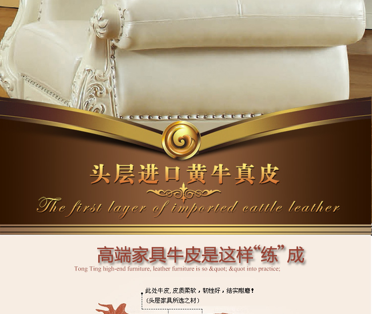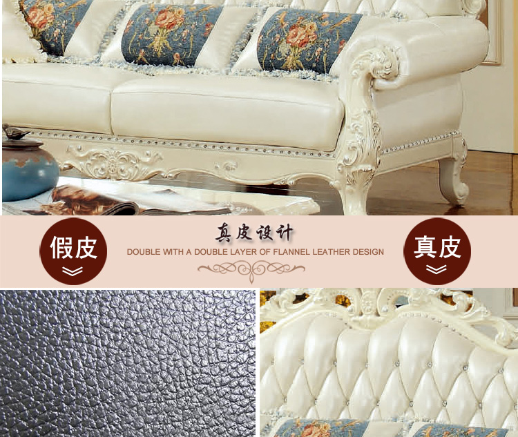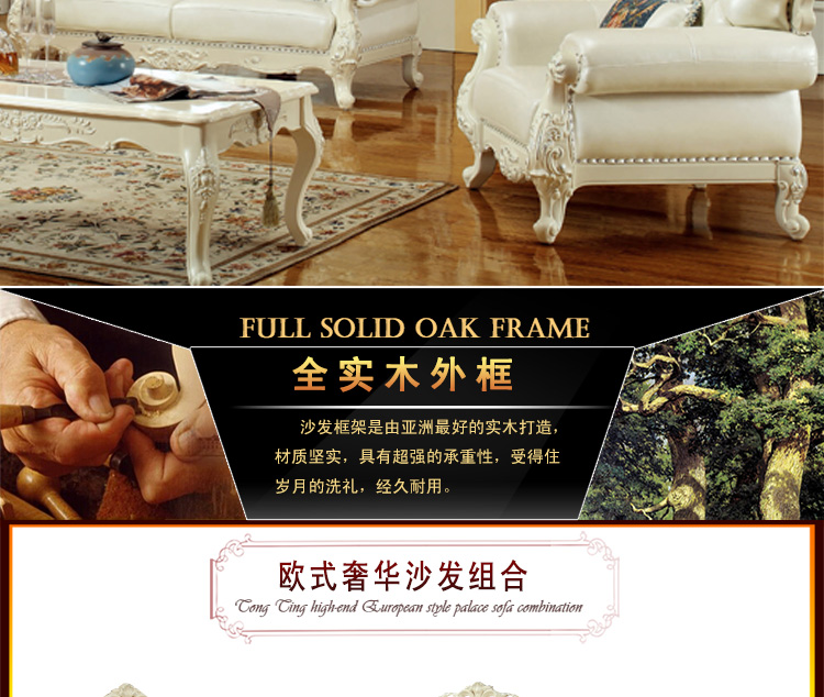 实木雕花,头层真皮,标准的高回弹海绵,抗压、耐用、舒适,这种品质如果想以这种价格在我们这边是买不到的哦