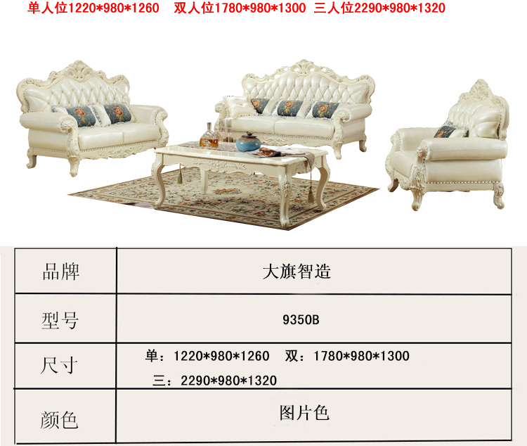 大旗 欧式皮艺沙发家居大小户型实木沙发组合欧式真皮沙发 9350B