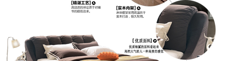 凯度6638布艺床可拆洗 时尚简约布床 现代双人床1.8米 小户型布艺软包床