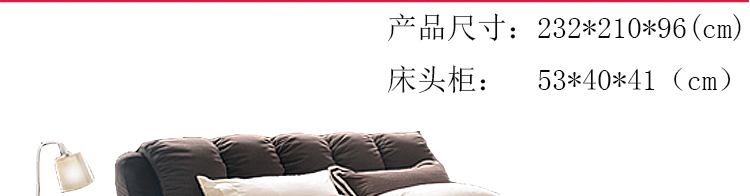 外围尺寸: 床:232*210*96 床头柜:53*40*41