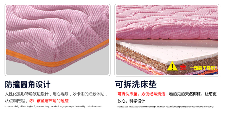妙卡思 进口乳胶1.2米儿童床垫 棕垫10cm童床定做婴儿席梦思3E椰梦维椰棕E12