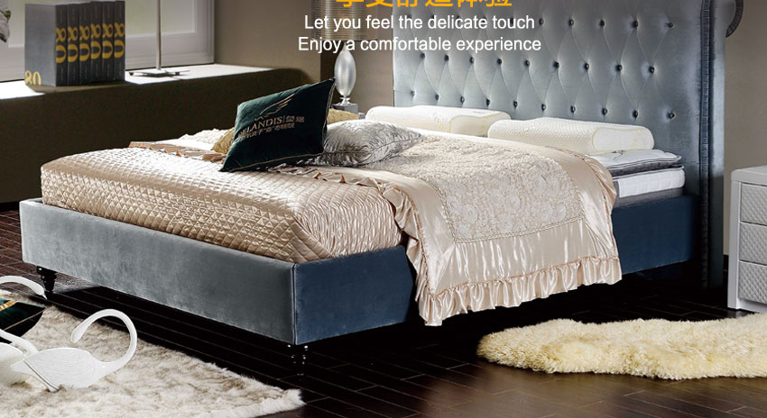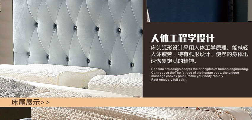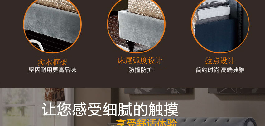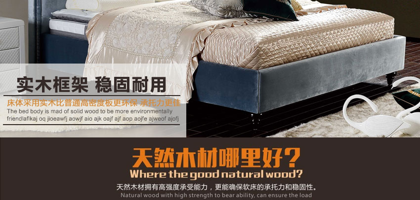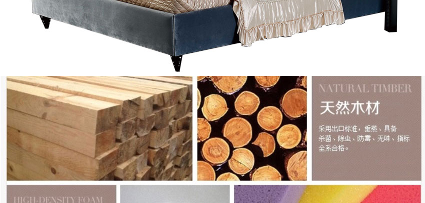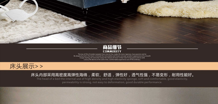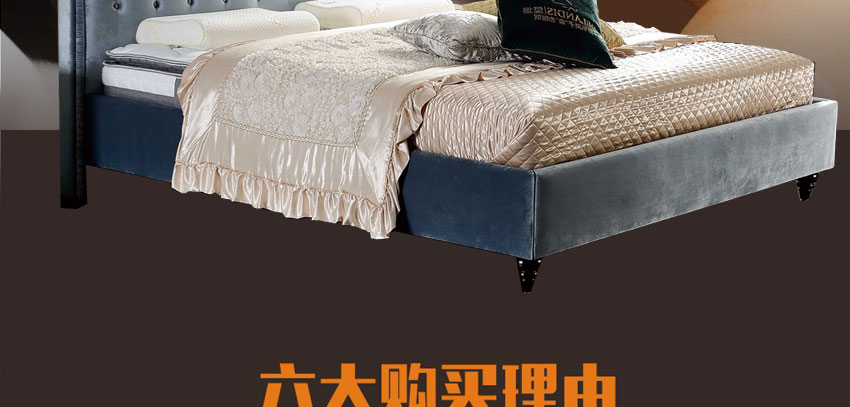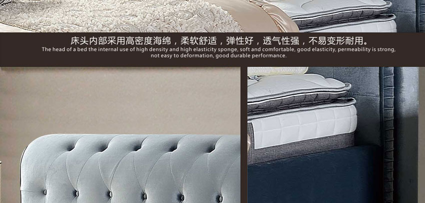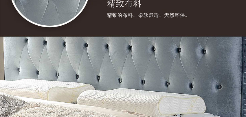 1.高级棉布,实木框架结构,加固高受力排骨架承受力更强,高密度耐压海棉,非常饱满,使靠背更加舒适,专利设计,仅此一家。2.不含甲醛,环保健康,让买家享受更舒适的睡眠