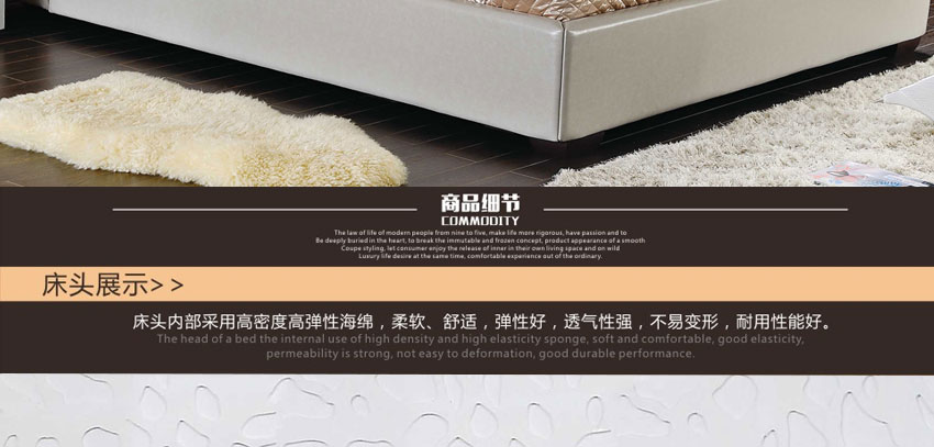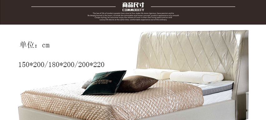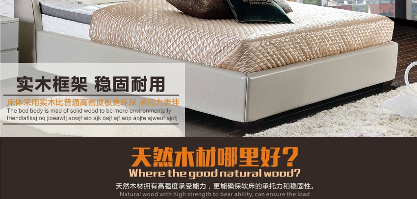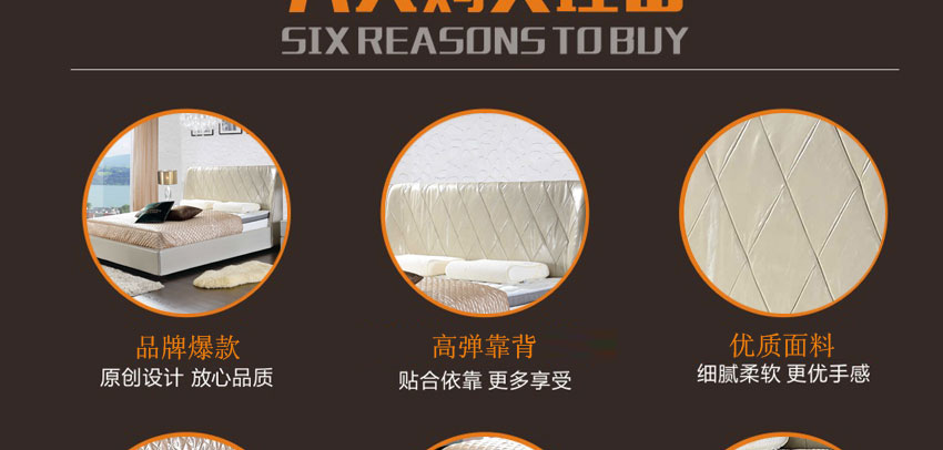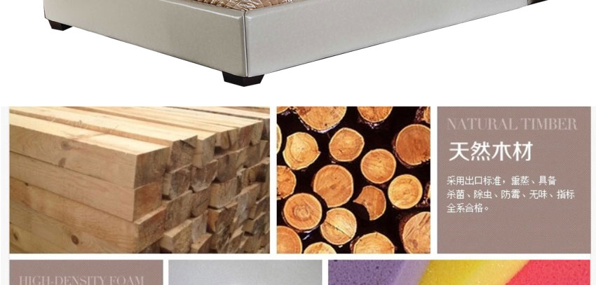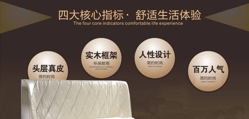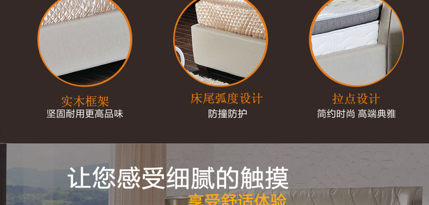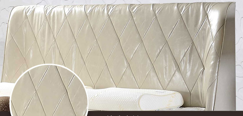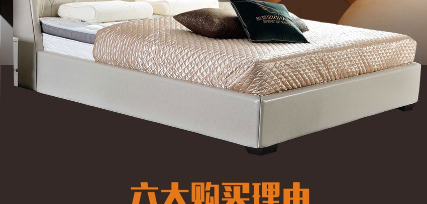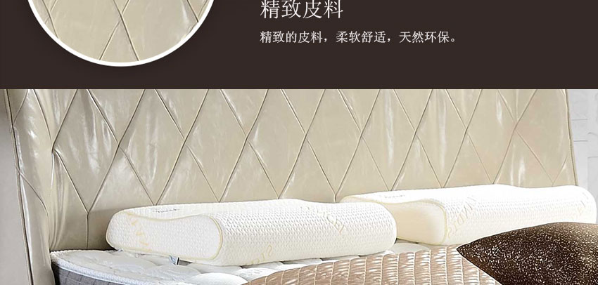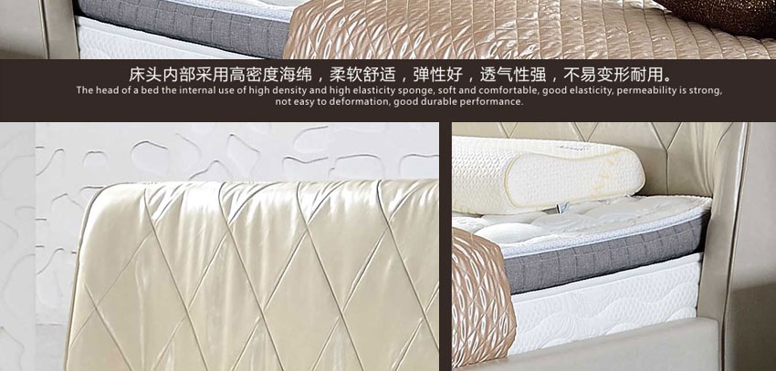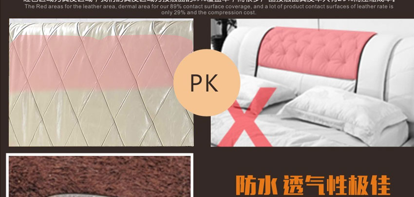 1.精选牛皮,实木框架结构,加固高受力排骨架承受力更强,高密度耐压海棉,非常饱满,使靠背更加舒适,专利设计,仅此一家。2.不含甲醛,环保健康,让买家享受更舒适的睡眠