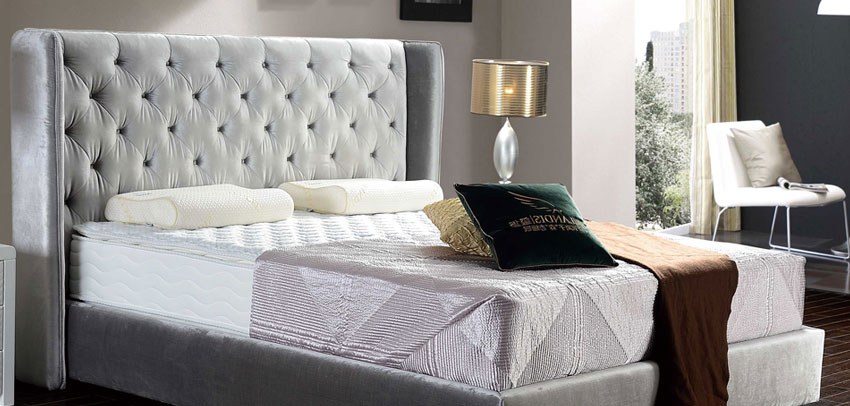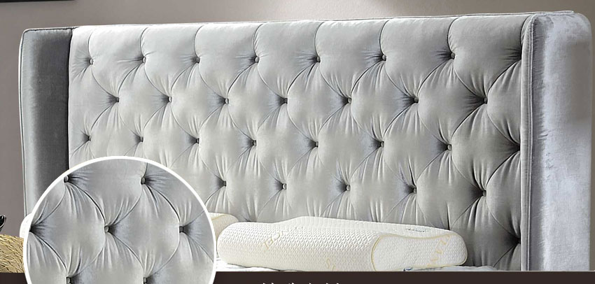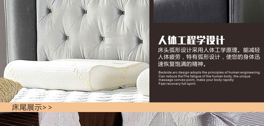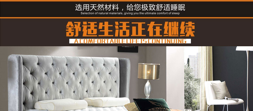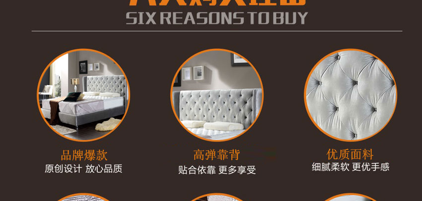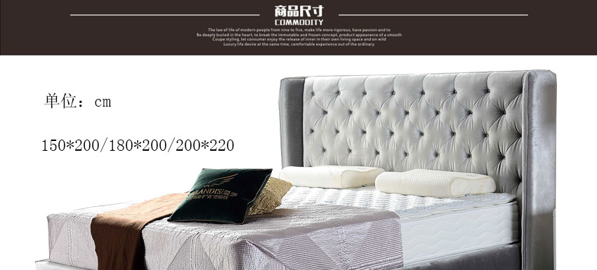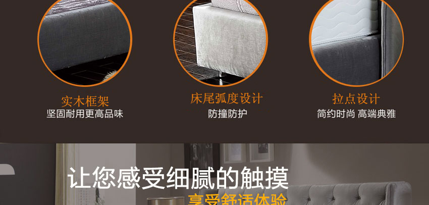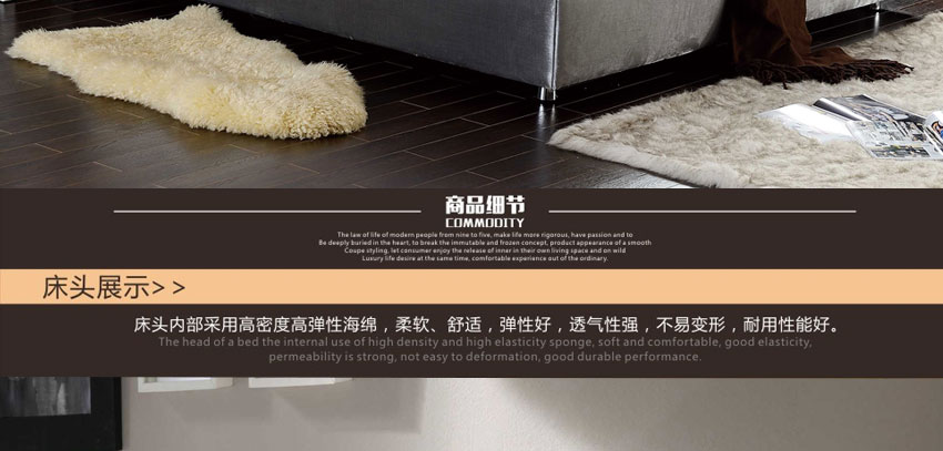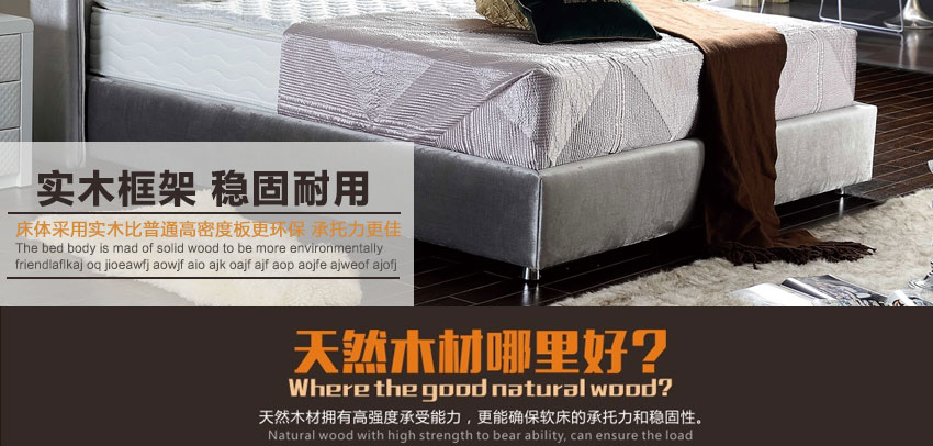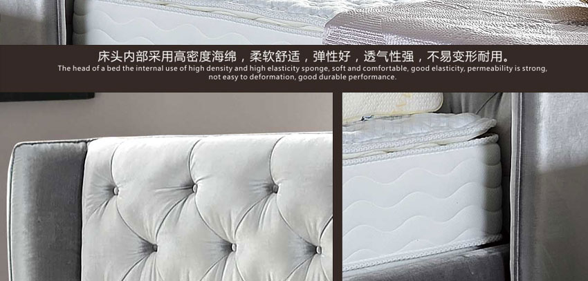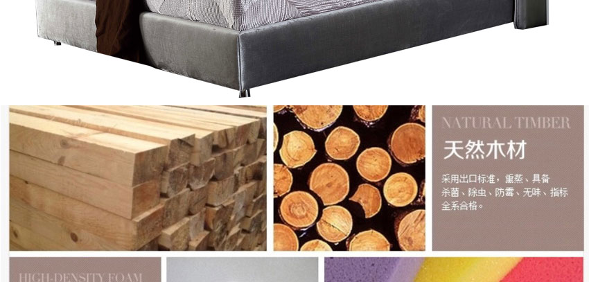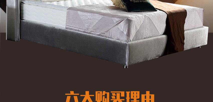 1.高级棉布,实木框架结构,加固高受力排骨架承受力更强,高密度耐压海棉,非常饱满,使靠背更加舒适,专利设计,仅此一家。2.不含甲醛,环保健康,让买家享受更舒适的睡眠