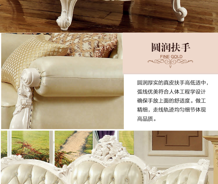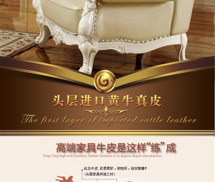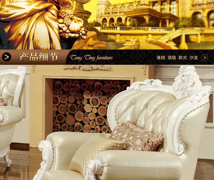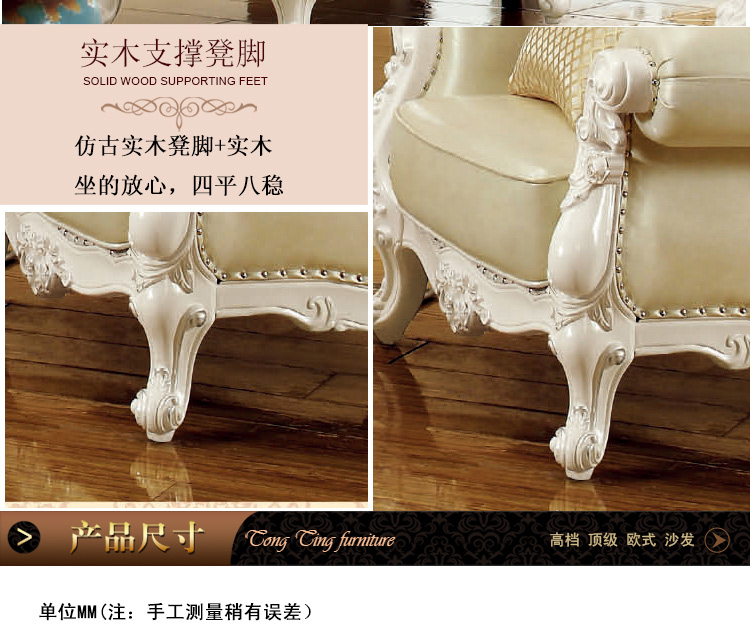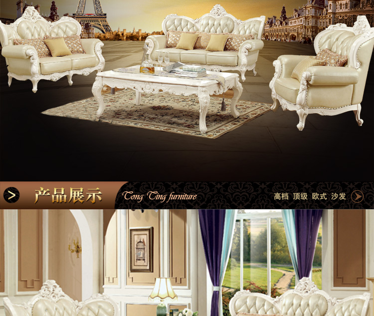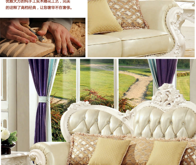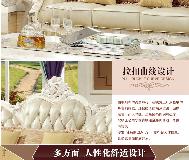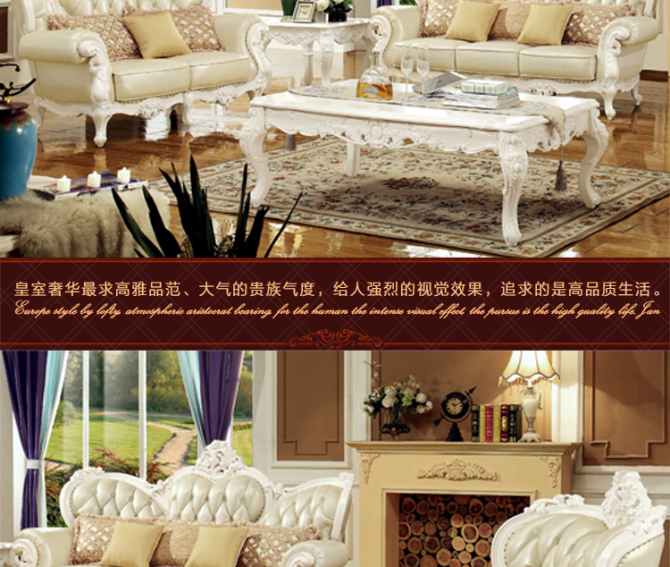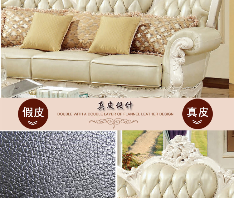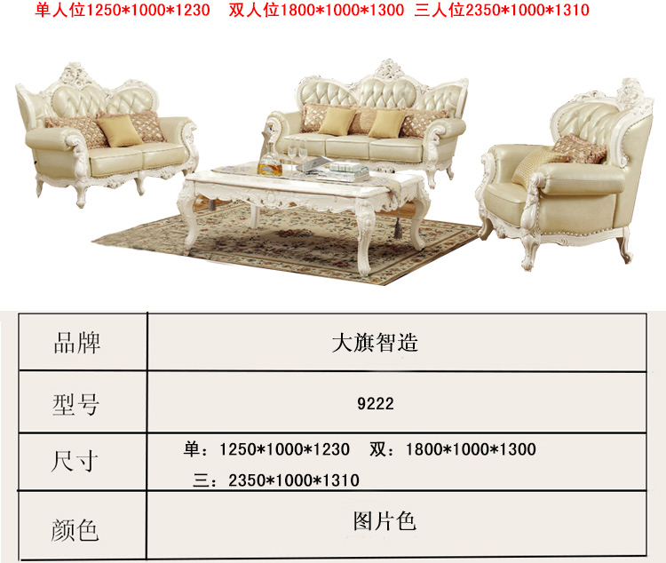大旗 高档沙发 大小户型实木沙发组合皮艺沙发家居欧式真皮沙发 9222