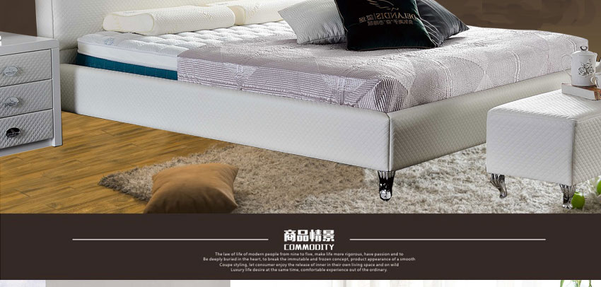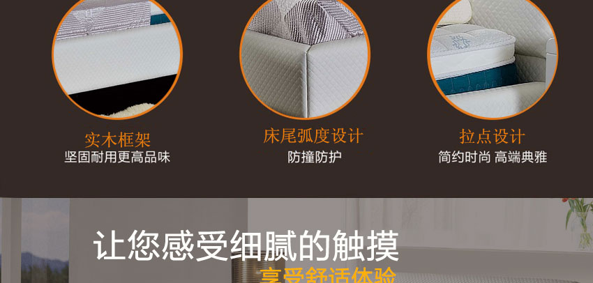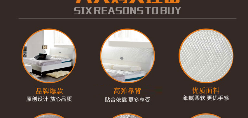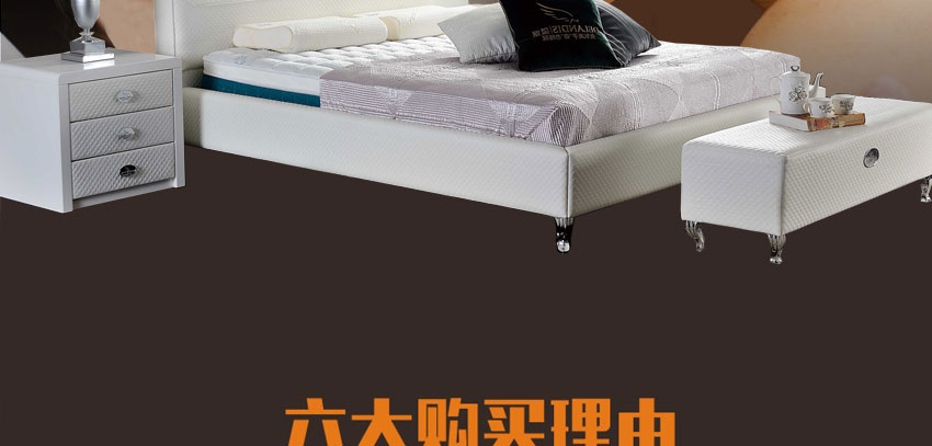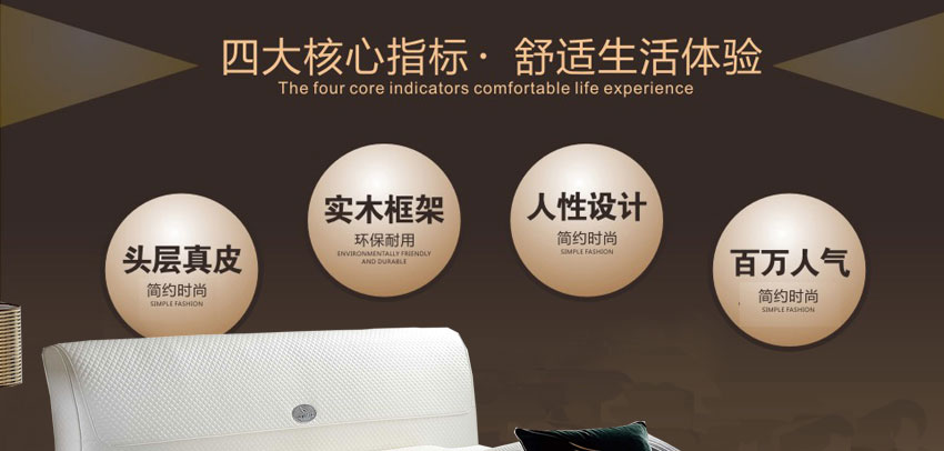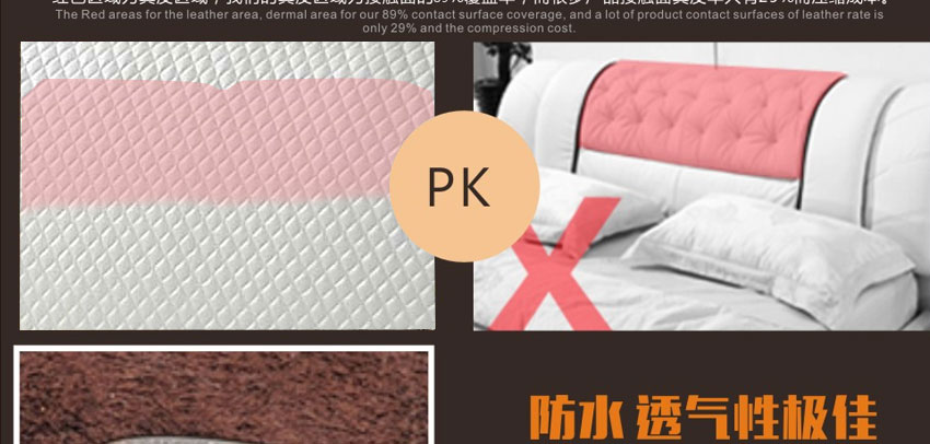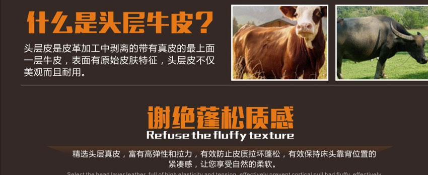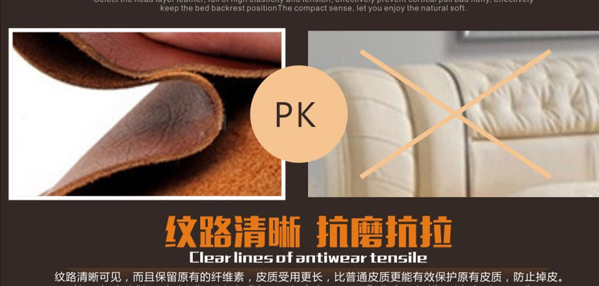 1.精选牛皮,实木框架结构,加固高受力排骨架承受力更强,高密度耐压海棉,非常饱满,使靠背更加舒适,专利设计,仅此一家。2.不含甲醛,环保健康,让买家享受更舒适的睡眠