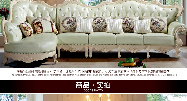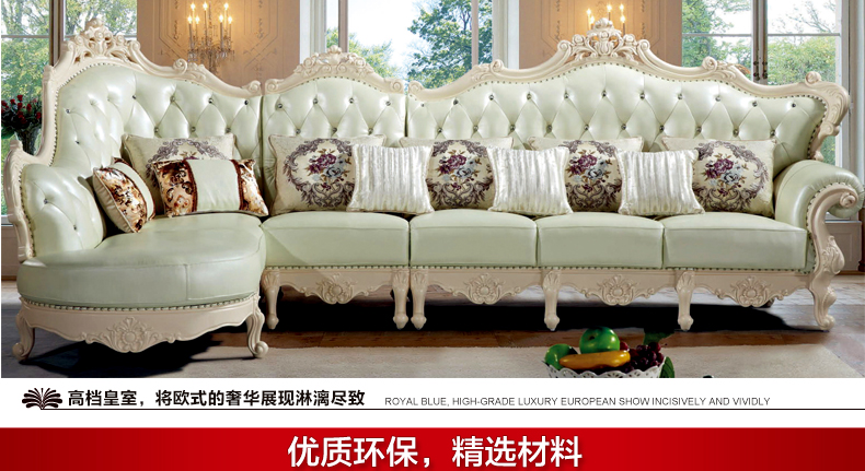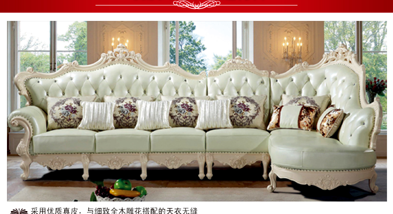 大旗 欧式真皮沙发头层牛皮 实木皮艺转角组合 小户型客厅住宅家具 9351