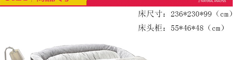 外围尺寸: 床:236*230*99 床头柜:55*46*48