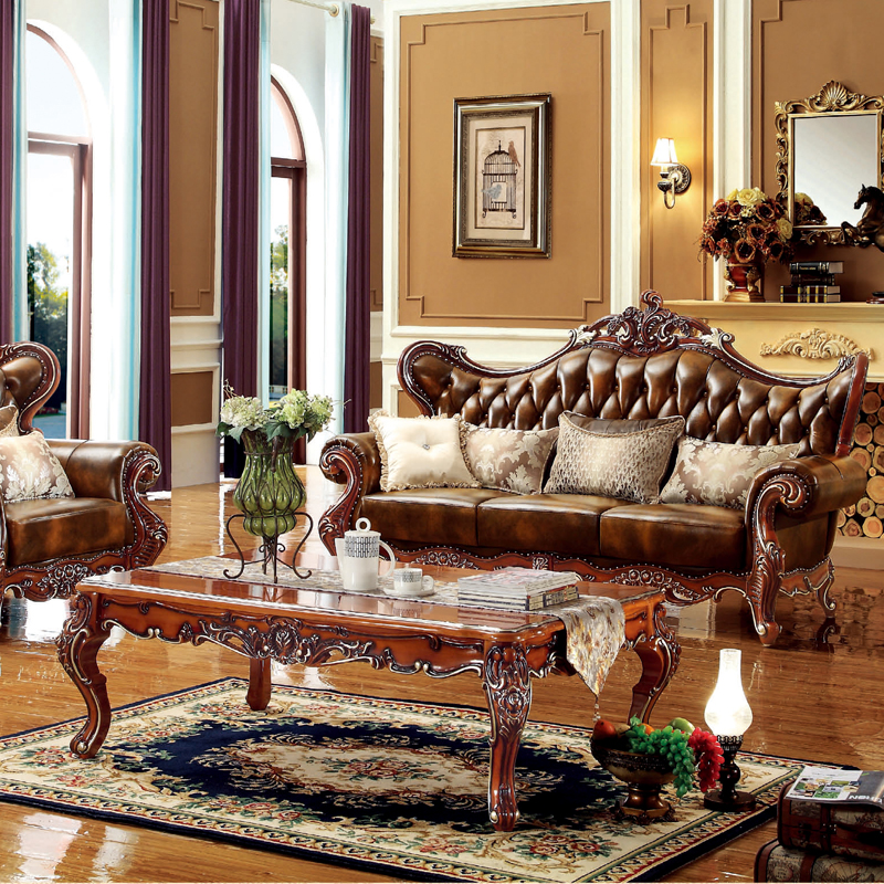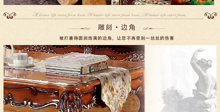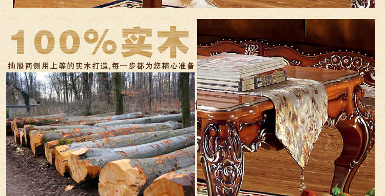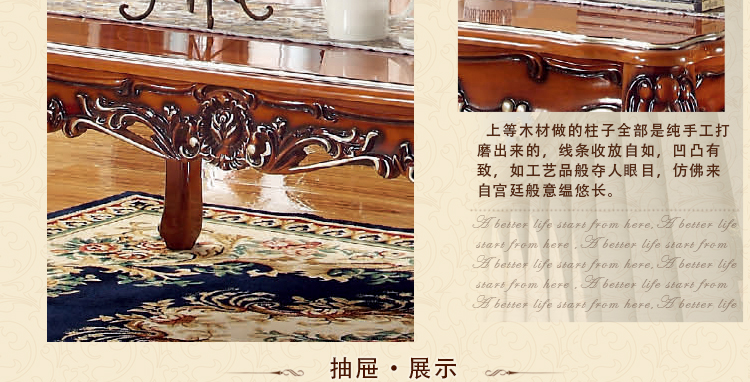 大旗 欧式大理石茶几 简约现代小户型实木茶几客厅田园茶几组合c09