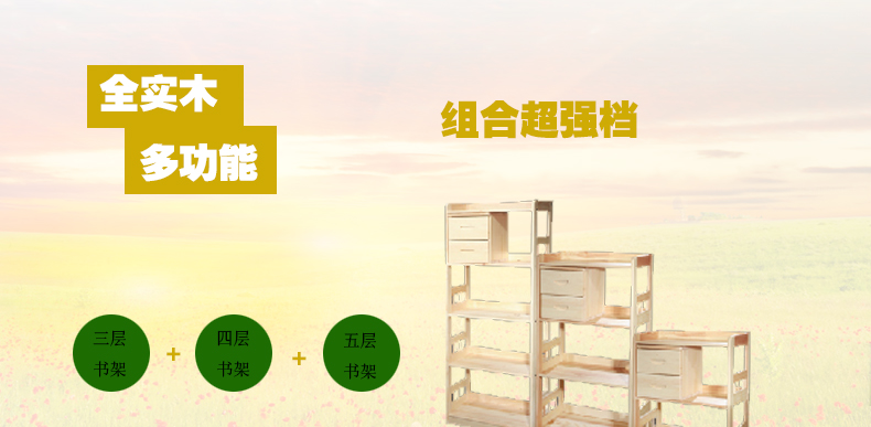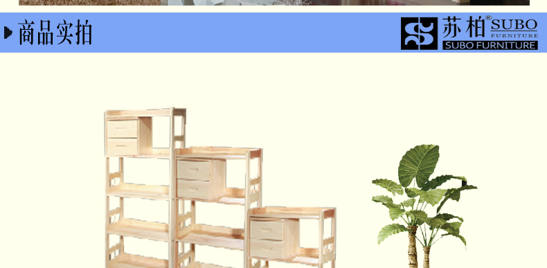 苏柏家具 松木现代简约 三层书架 四层书架 五层书架