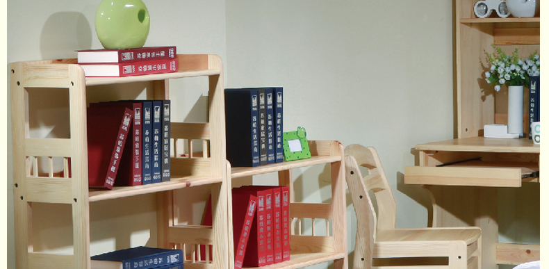 此款书架,可放书空间大,而且是纯实木的,很安全环保