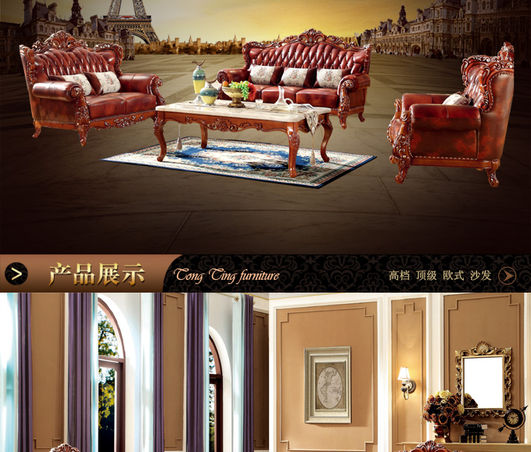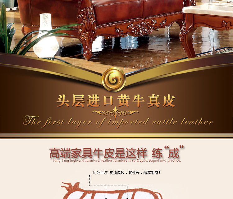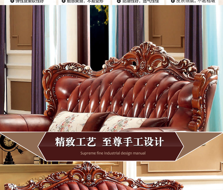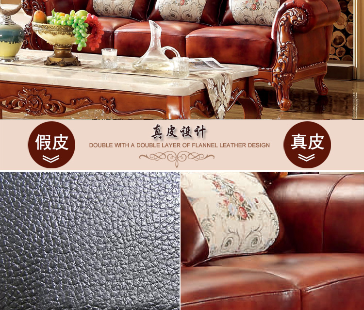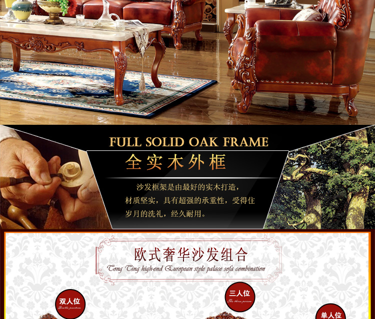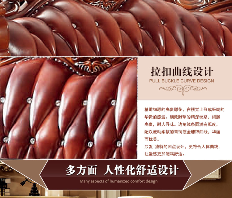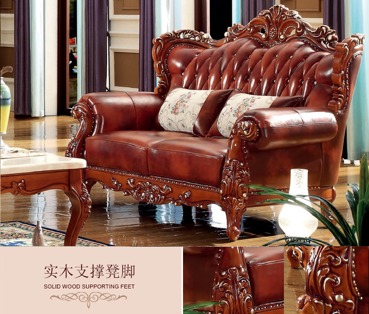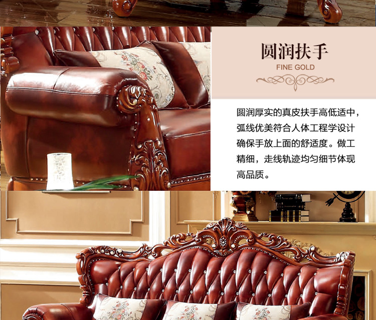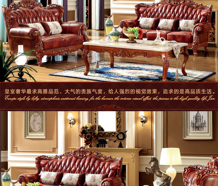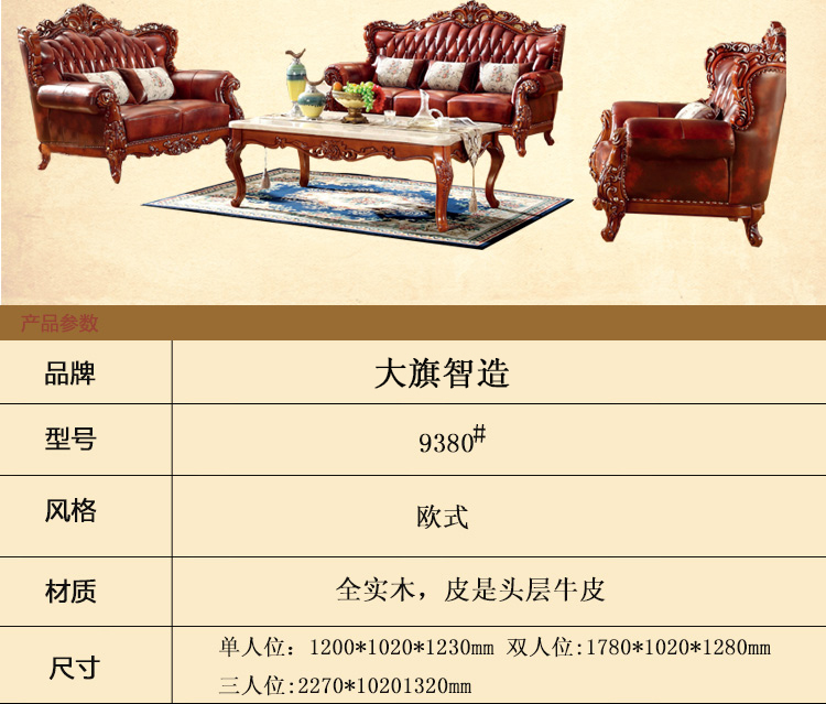 大旗智造 欧式真皮沙发组合 客厅奢华大小户型头层牛皮实木沙发 9380