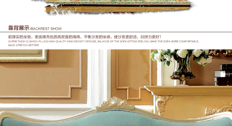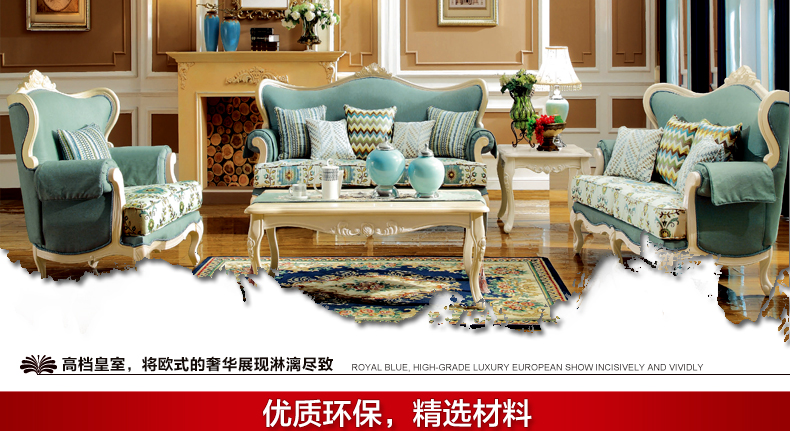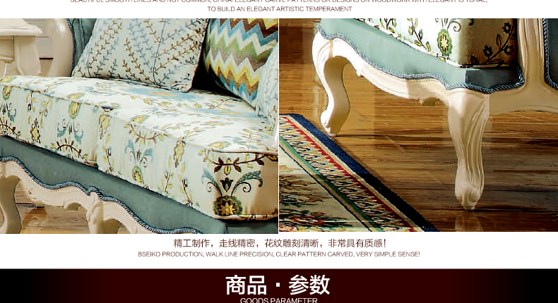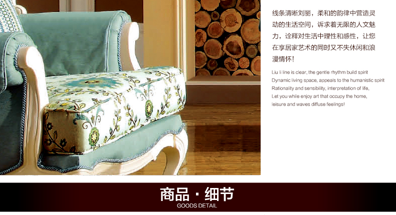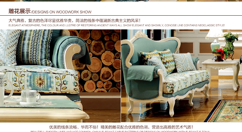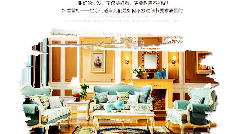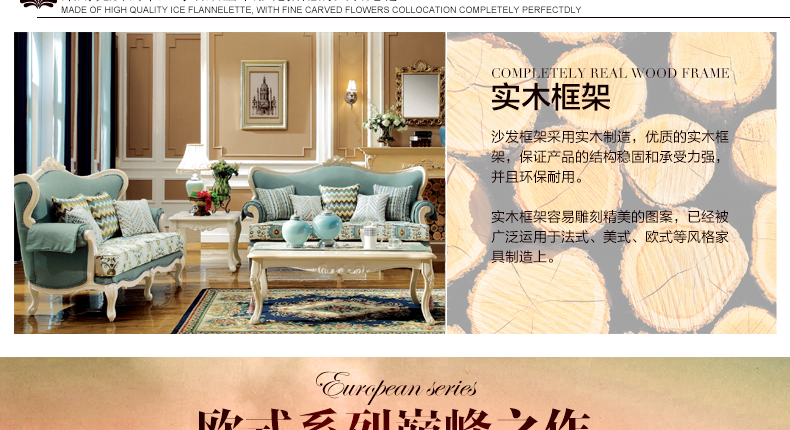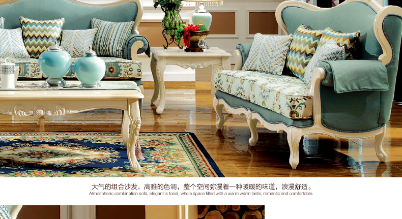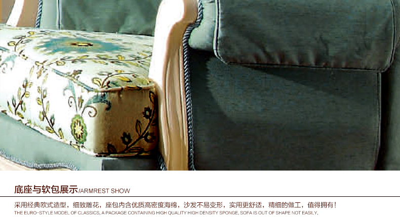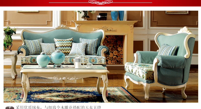 欧式风格十分大气,家里人都非常喜欢。沙发的布料手感也很好,没有任何异味。客服服务周到,耐心。赞一个!