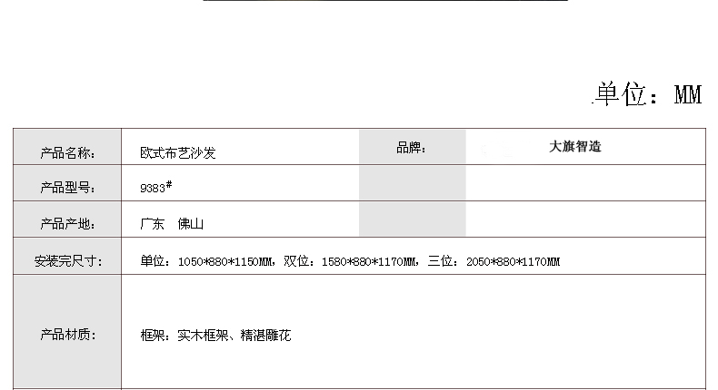 大旗智造 欧式布艺沙发高档客厅大小户型可拆洗欧式布艺沙发组合 9380