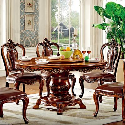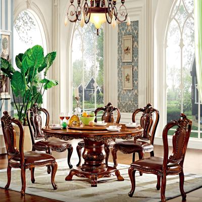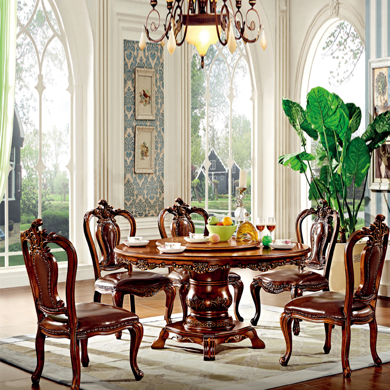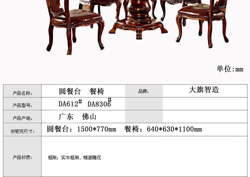 大旗智造 天然大理石圆餐桌转盘圆餐台 实木真皮餐椅 圆餐台DA612#餐椅DA8306#