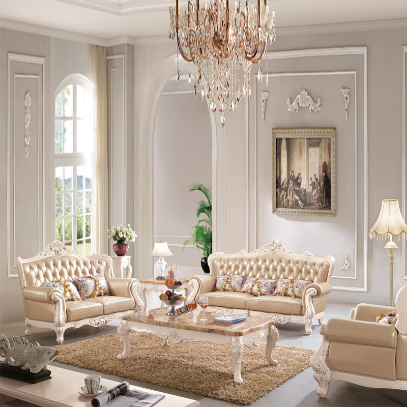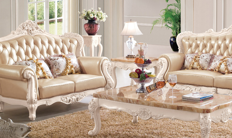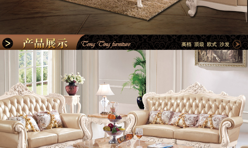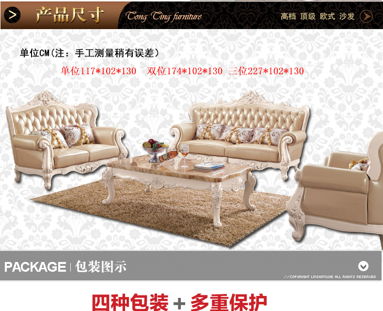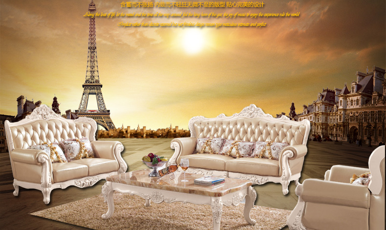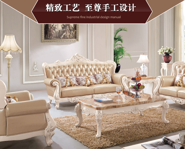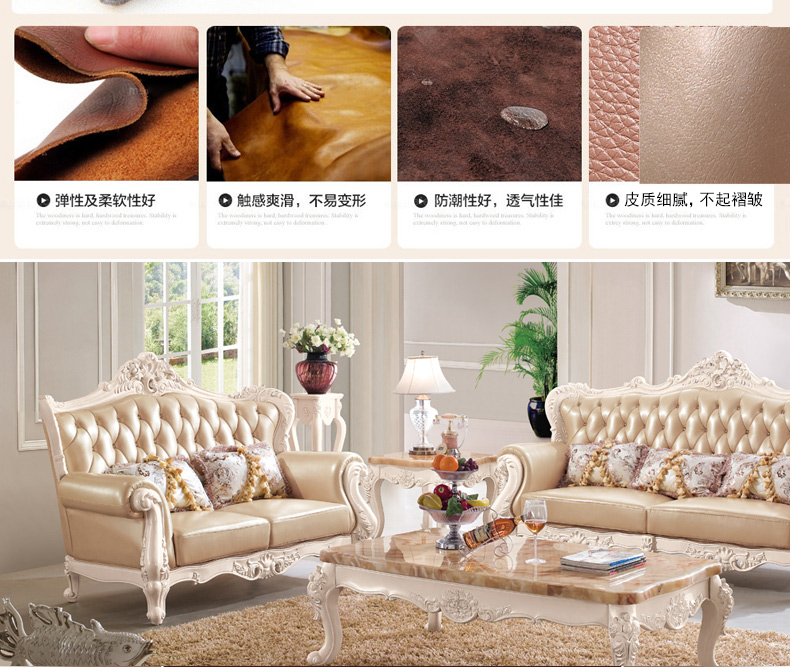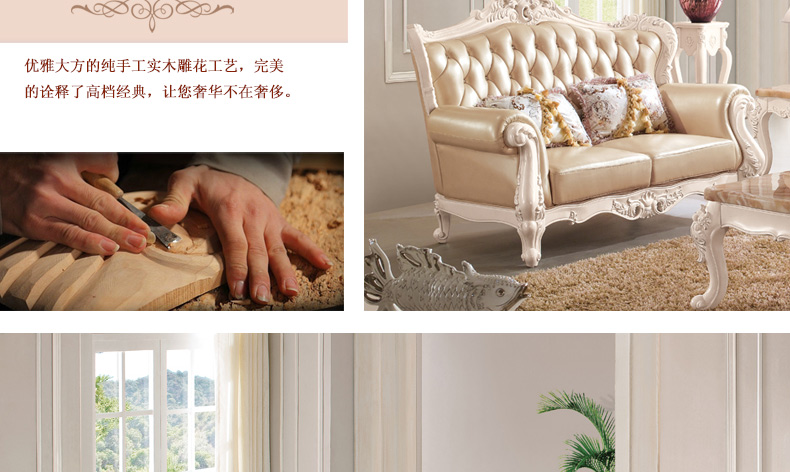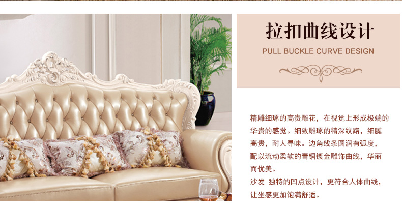 右岸嘉园真皮欧式沙发组合U型大户型实木雕花进口沙发别墅奢华家具806
