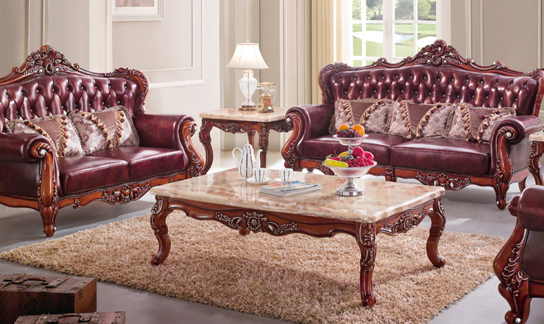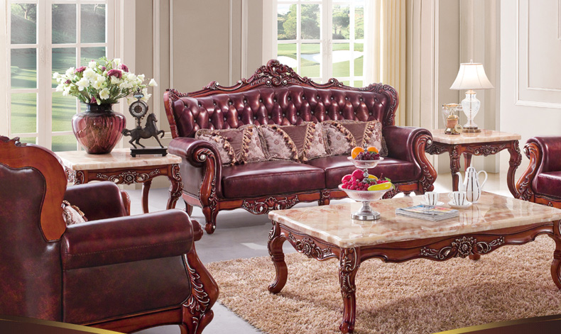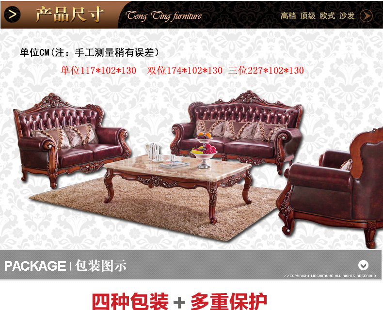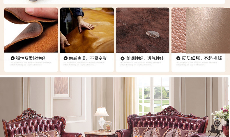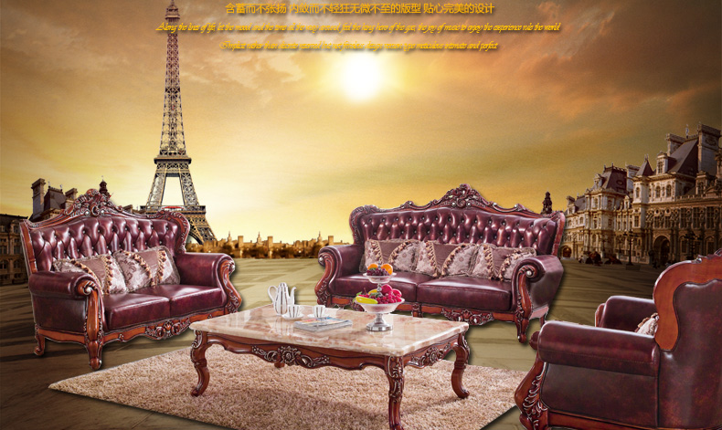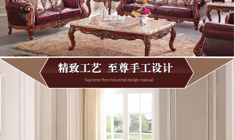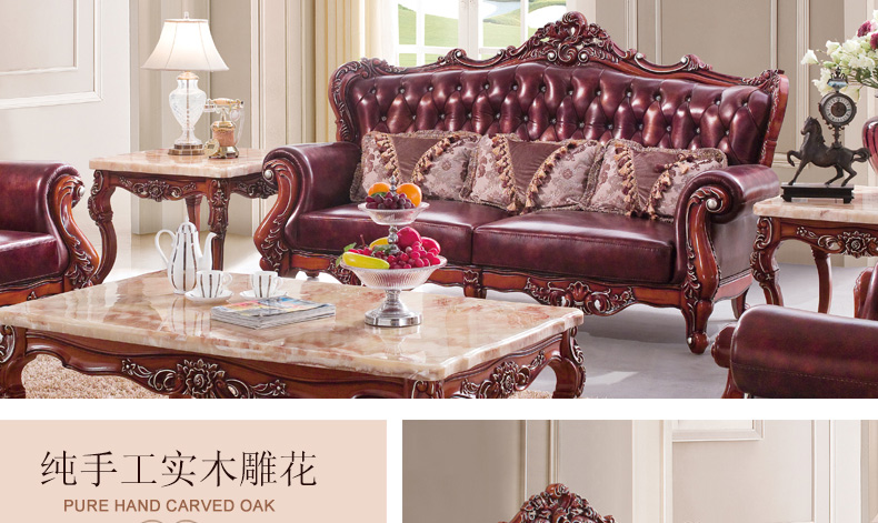 右岸嘉园欧式沙发小户型客厅田园实木沙发单人双人三人U型皮艺沙发组合806
