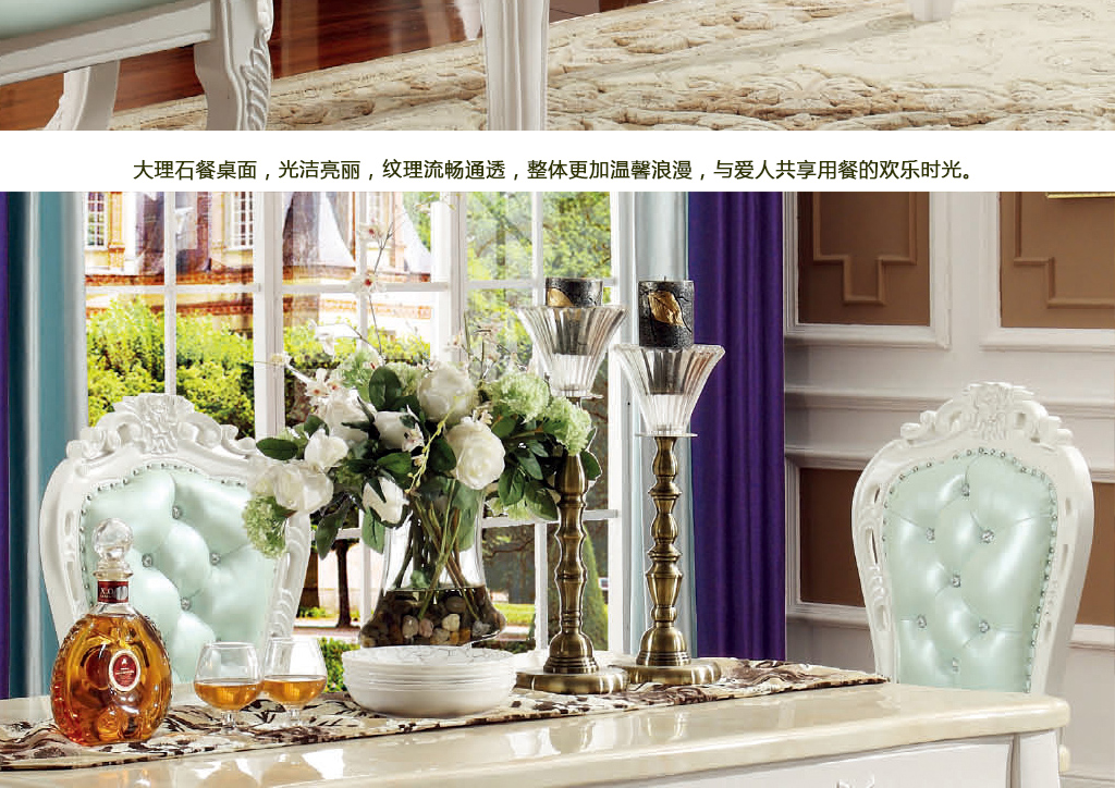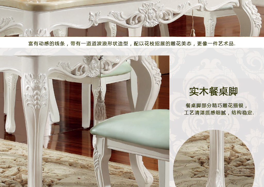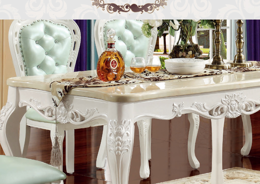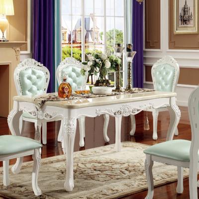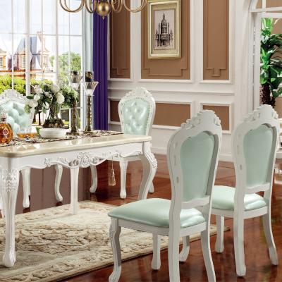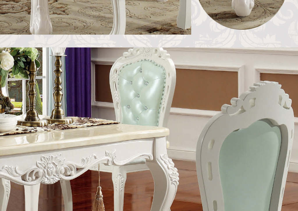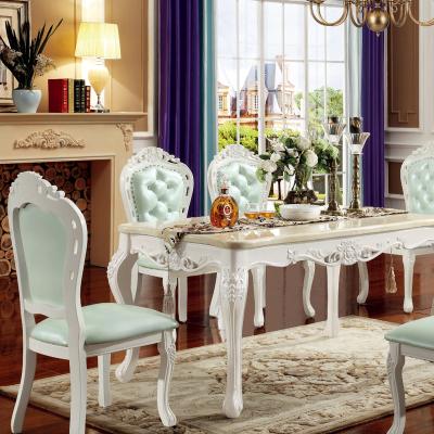 大旗智造 欧式餐桌椅 实木大理石餐桌皮布餐椅长方形餐台 长餐台T08# 餐椅9987#