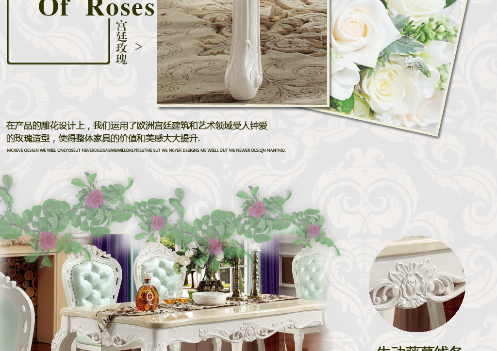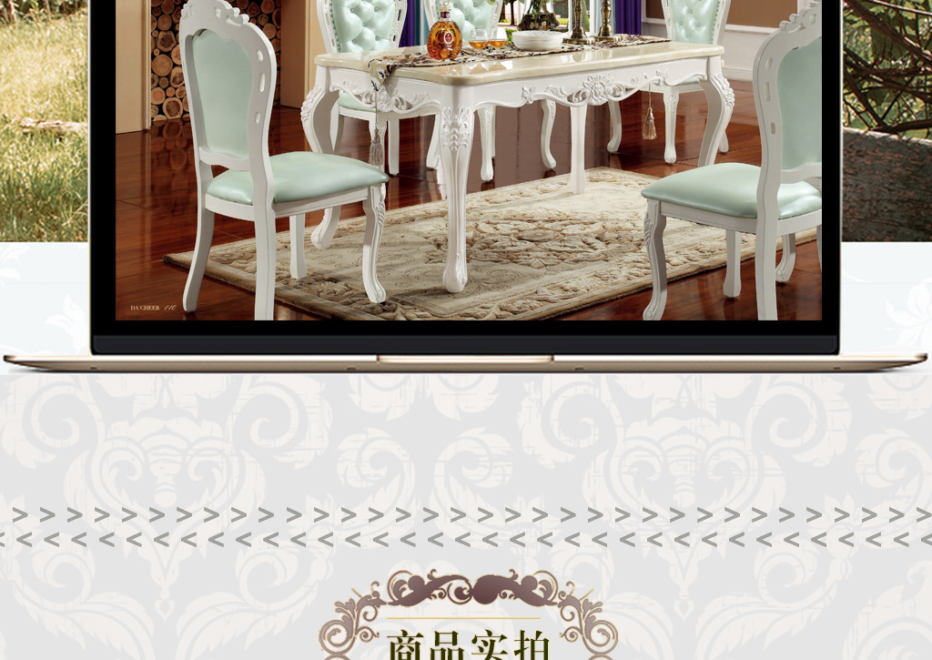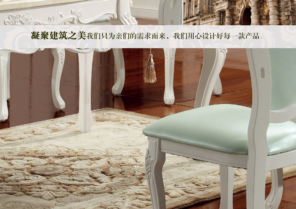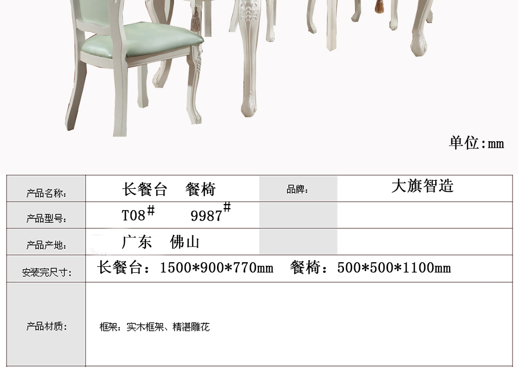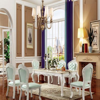 大旗智造 欧式餐桌椅 实木大理石餐桌皮布餐椅长方形餐台 长餐台T08# 餐椅9987#