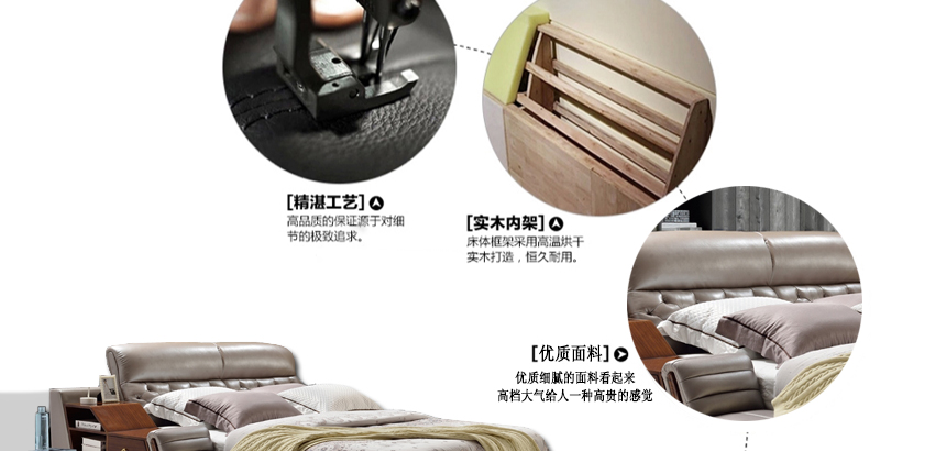 凯度皮床真皮双人时尚软床头层牛皮结婚床1.8米现代床8911
