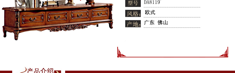 大旗智造 欧式实木电视柜简约组合地柜矮柜雕花客厅家具 DA8119#