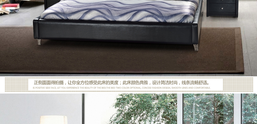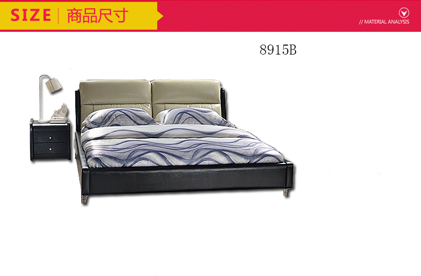 外围尺寸: 床:1.8*2.0; 床头柜:48*49*43cm