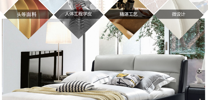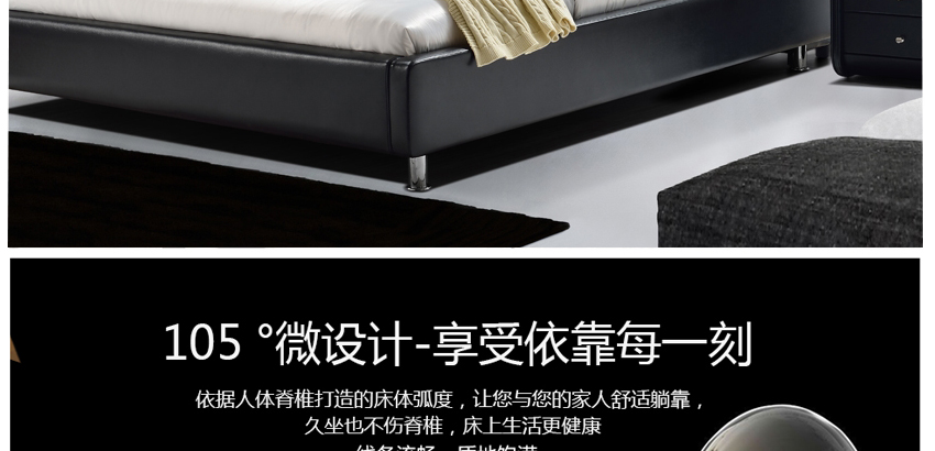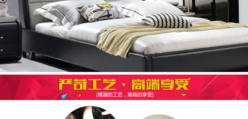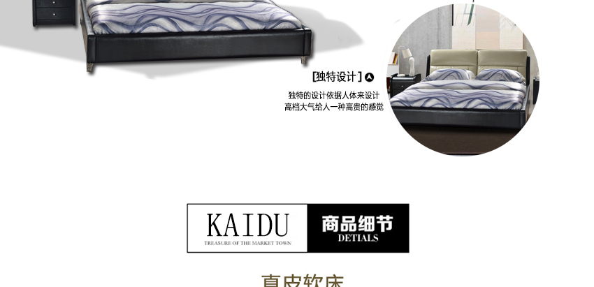 凯度卧室家具床 皮床真皮床 皮艺软床 1.8米双人床 婚床现代简约8915