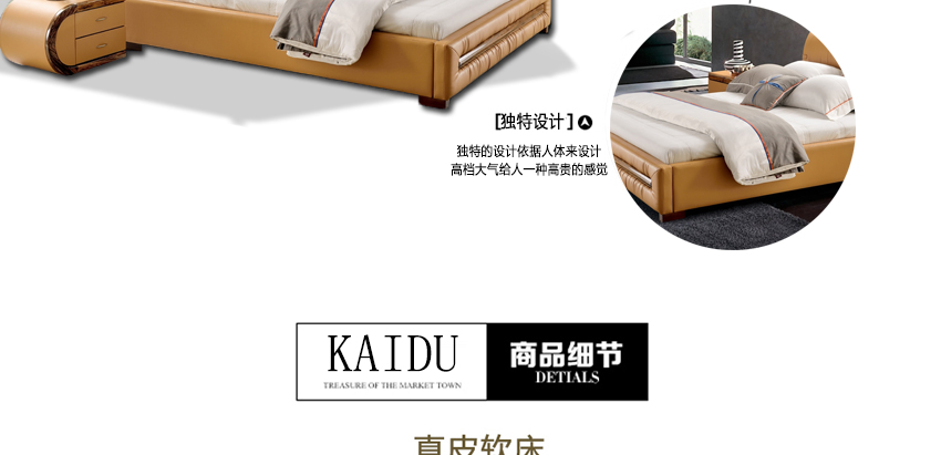 凯度皮床真皮床1.8米双人床现代皮艺床软床婚床储物床8917